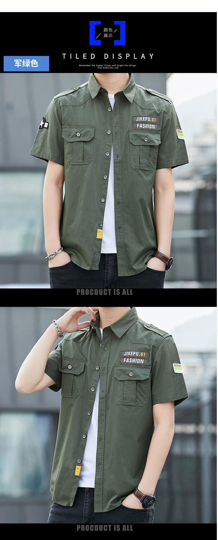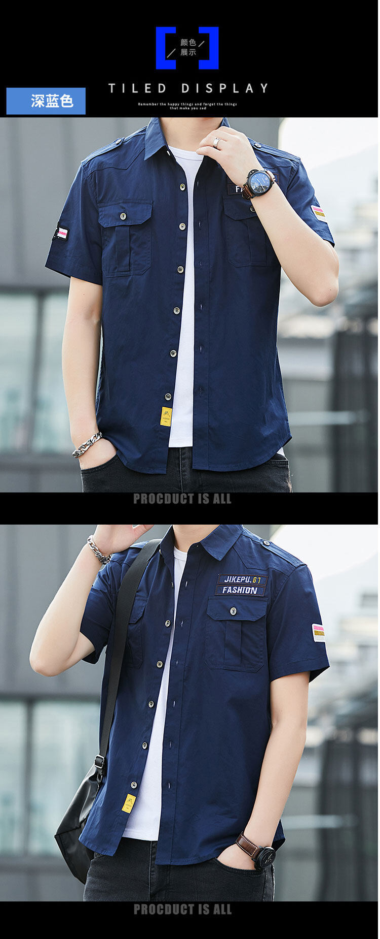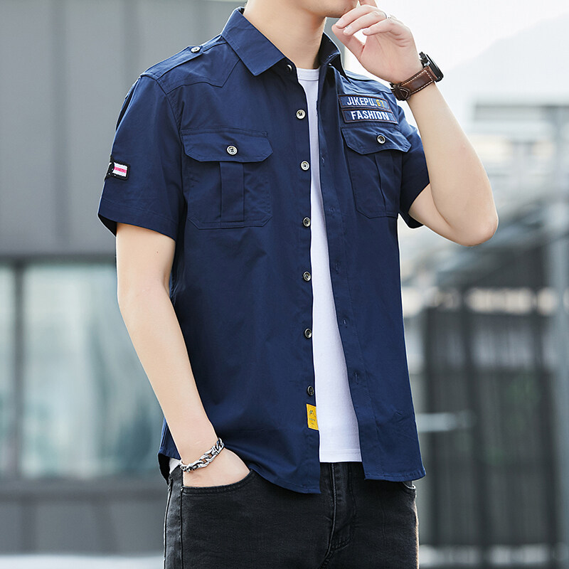 Áo sơ mi nam ngắn tay mùa hè phiên bản Hàn Quốc cotton mỏng phần dụng cụ giản dị nam cầu vai áo sơ mi hai túi bán buôn thủy triều