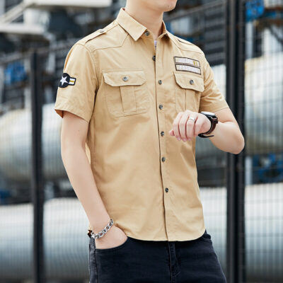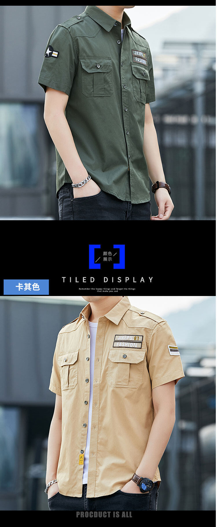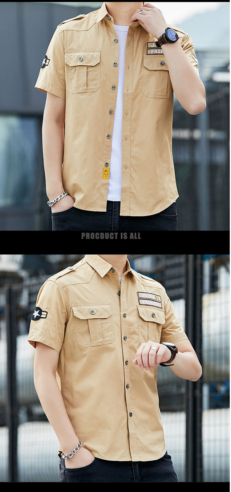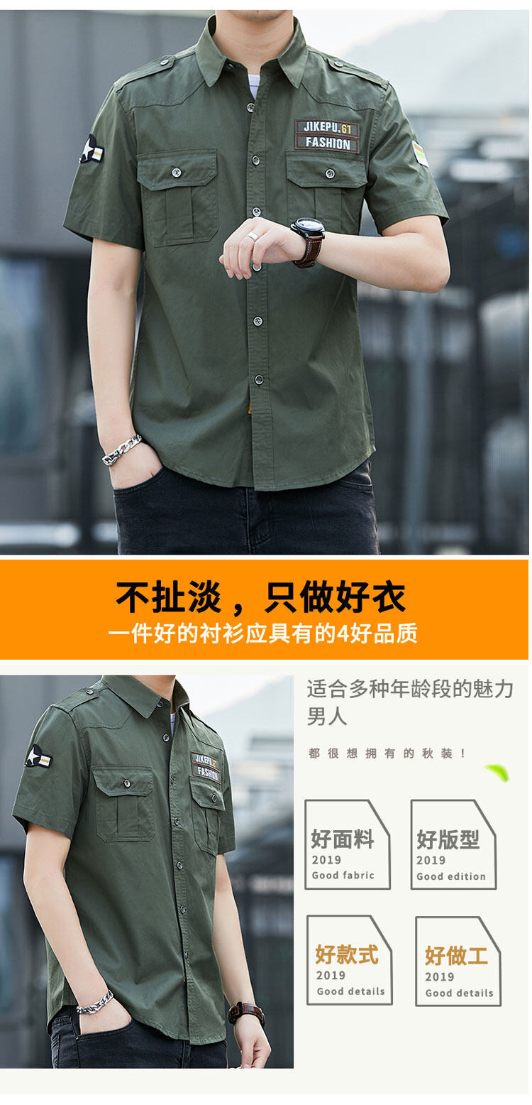 Áo sơ mi nam ngắn tay mùa hè phiên bản Hàn Quốc cotton mỏng phần dụng cụ giản dị nam cầu vai áo sơ mi hai túi bán buôn thủy triều
