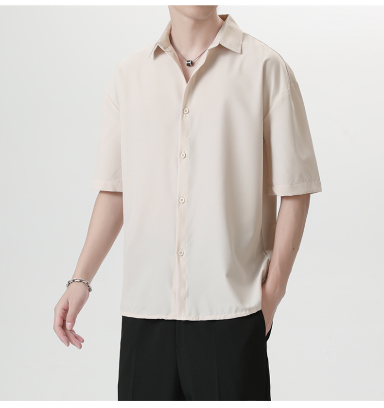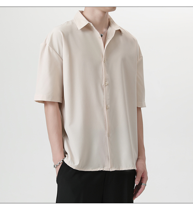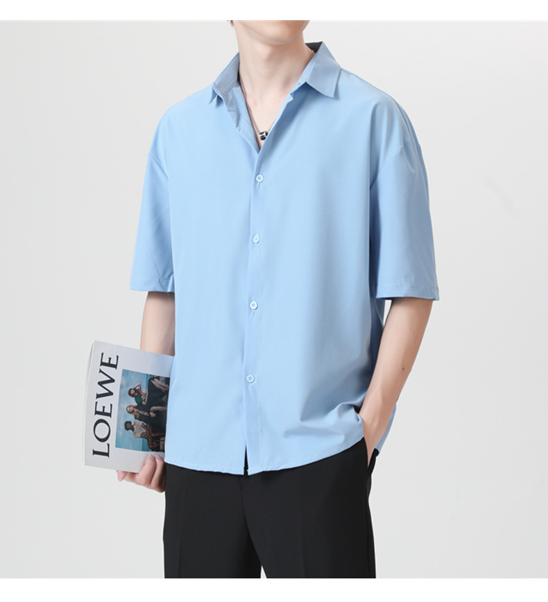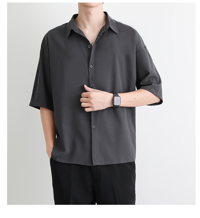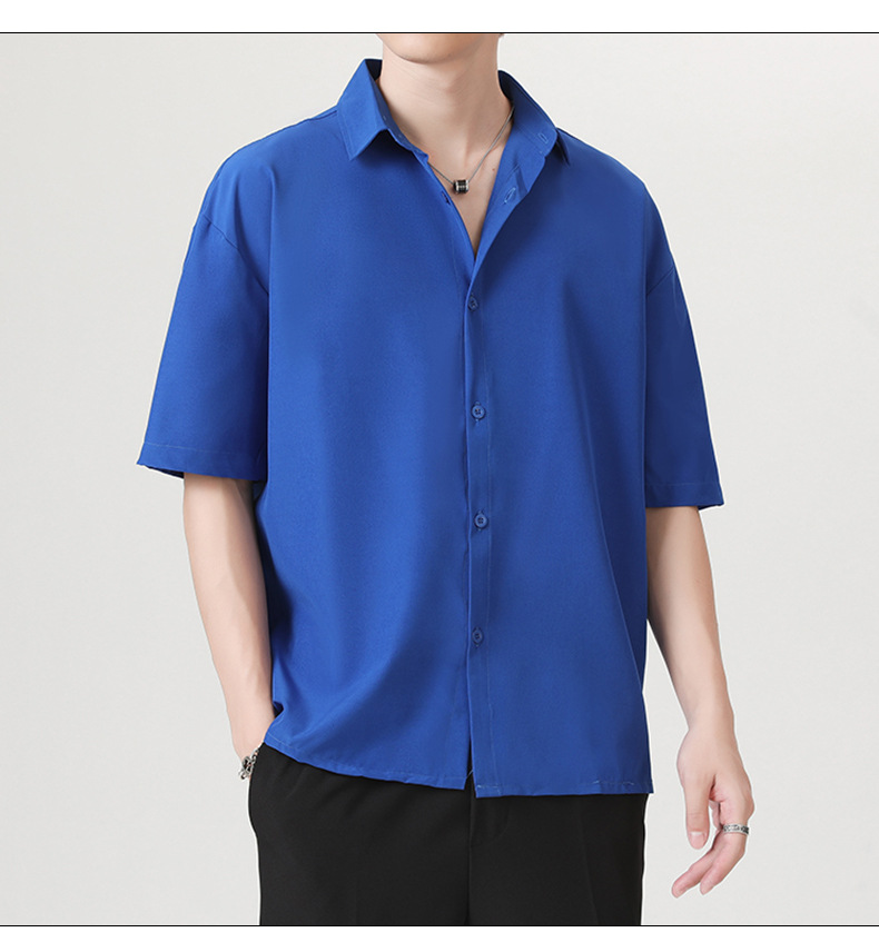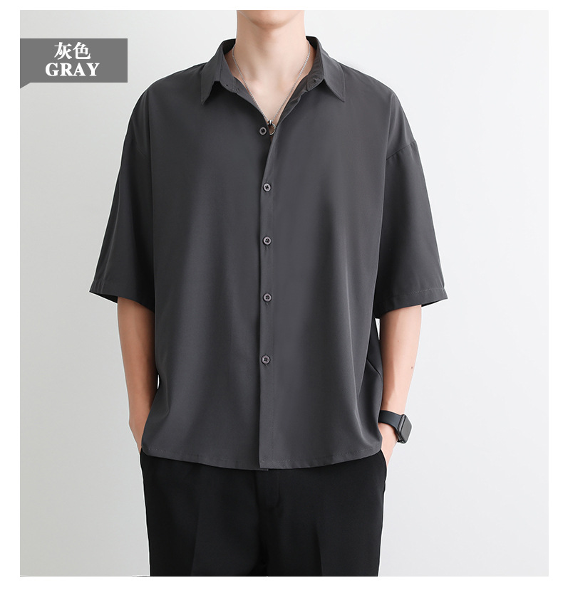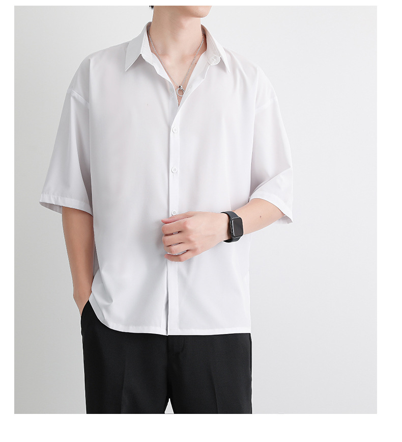 Áo sơ mi nam ngắn tay phiên bản Hàn Quốc của áo sơ mi nam lụa băng phong cách Hồng Kông áo sơ mi tay rộng ngũ quý không ủi quần áo nam chống nhăn