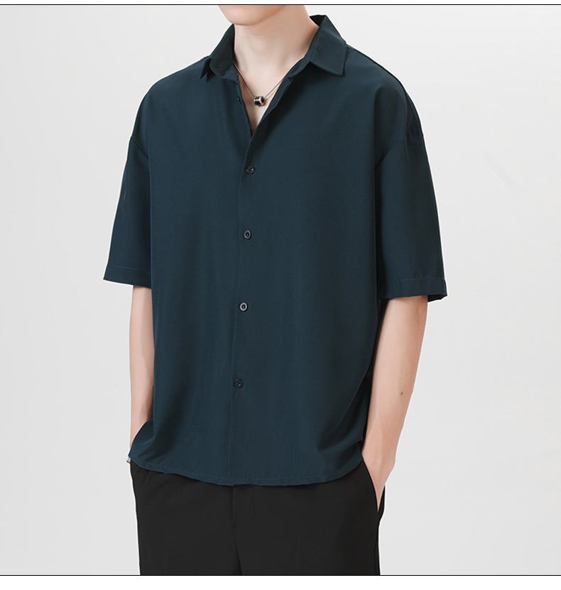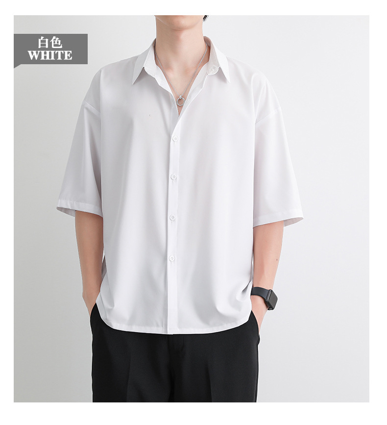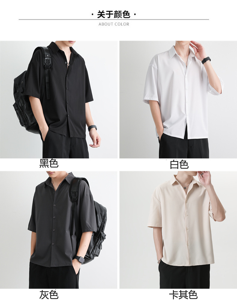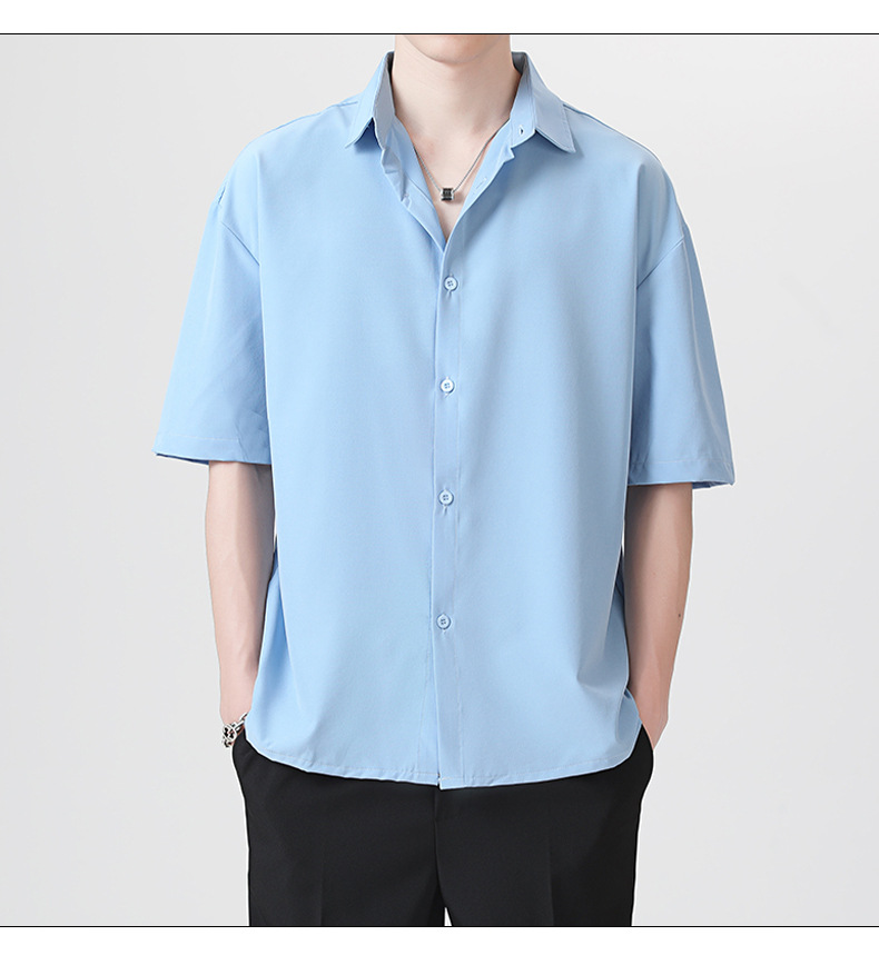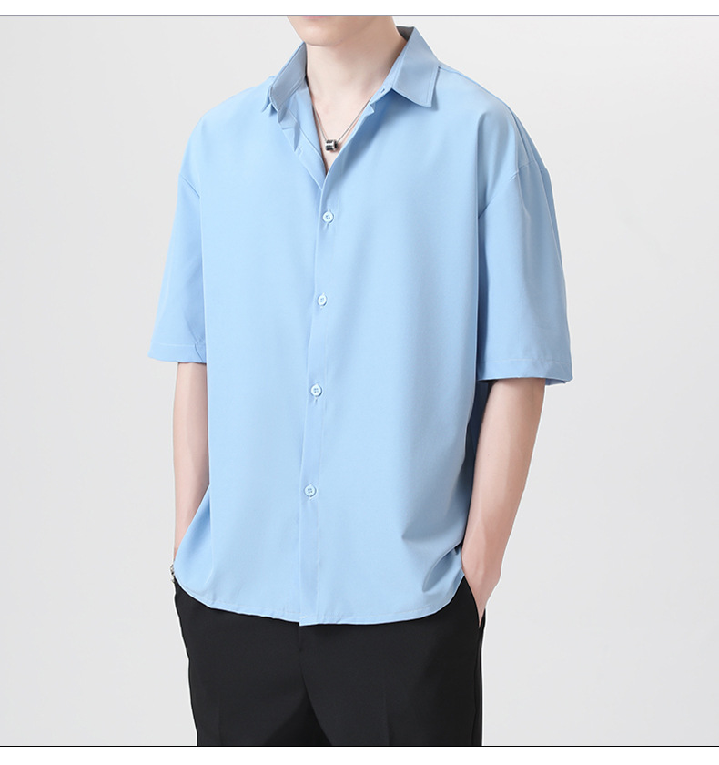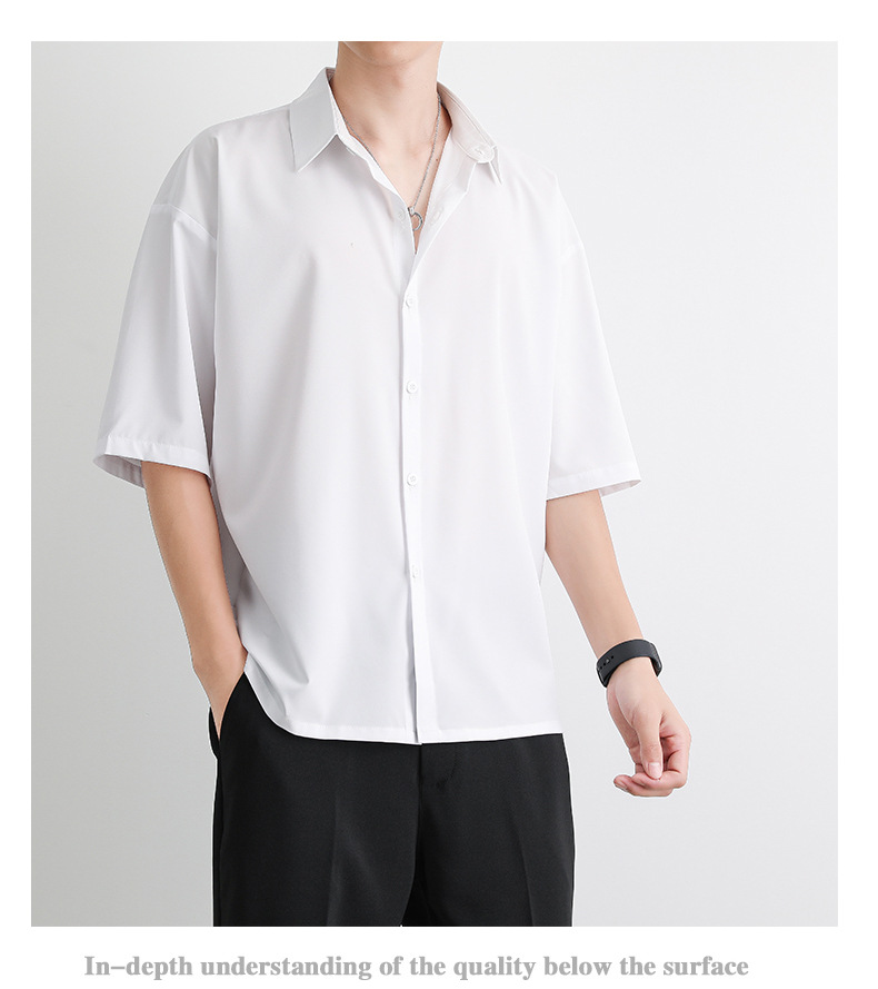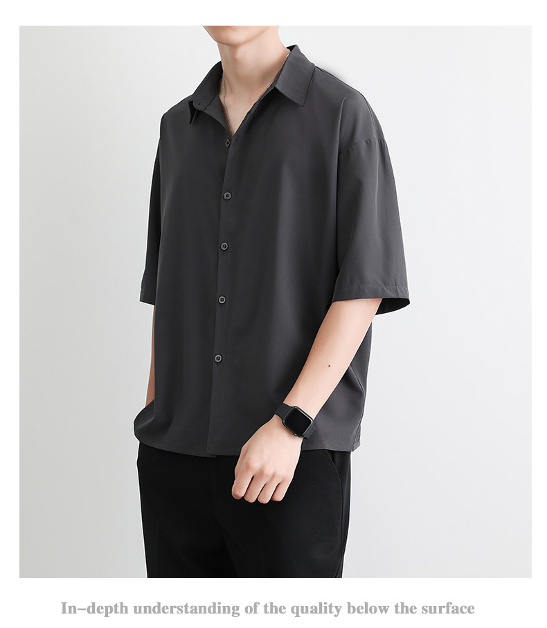 Áo sơ mi nam ngắn tay phiên bản Hàn Quốc của áo sơ mi nam lụa băng phong cách Hồng Kông áo sơ mi tay rộng ngũ quý không ủi quần áo nam chống nhăn