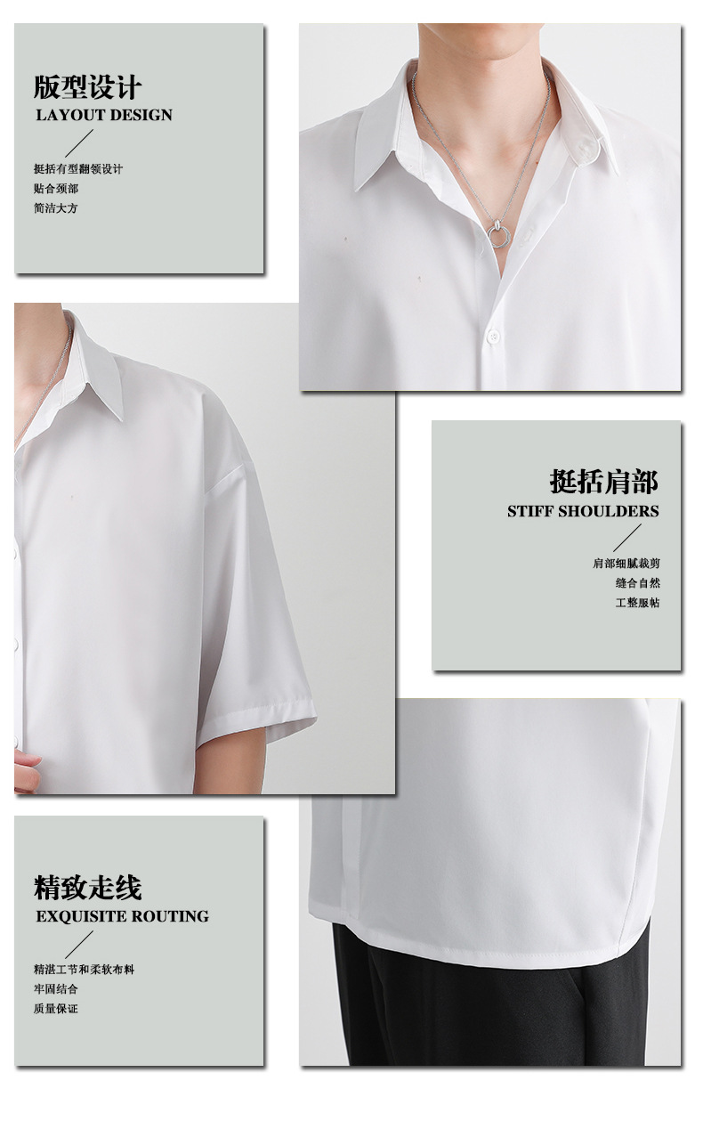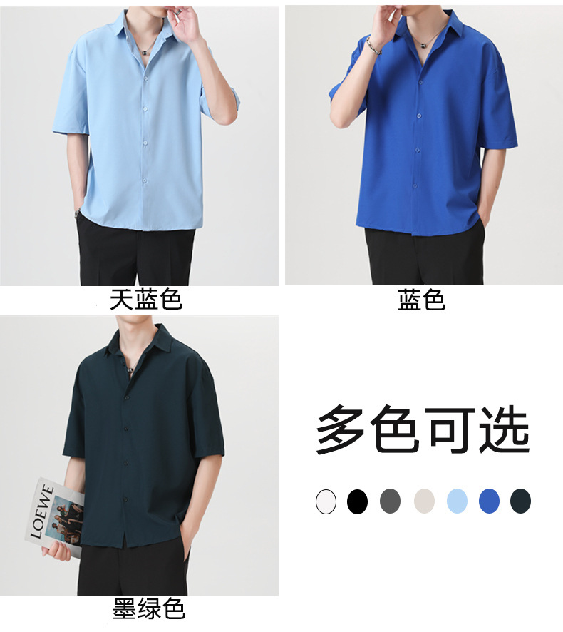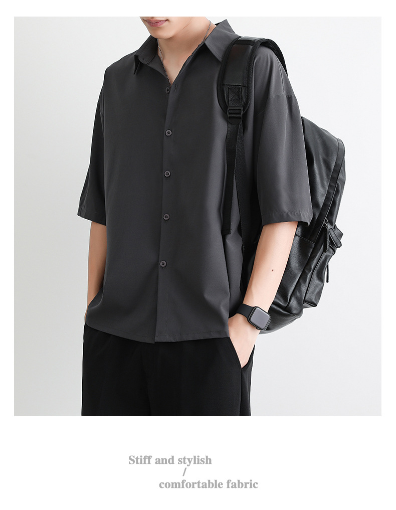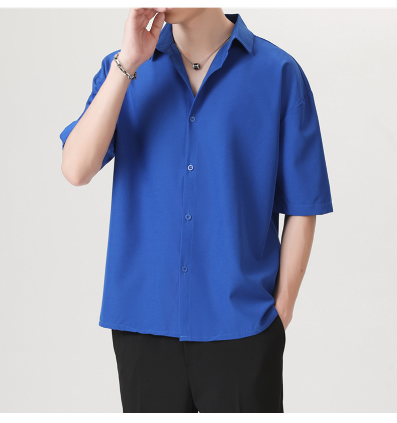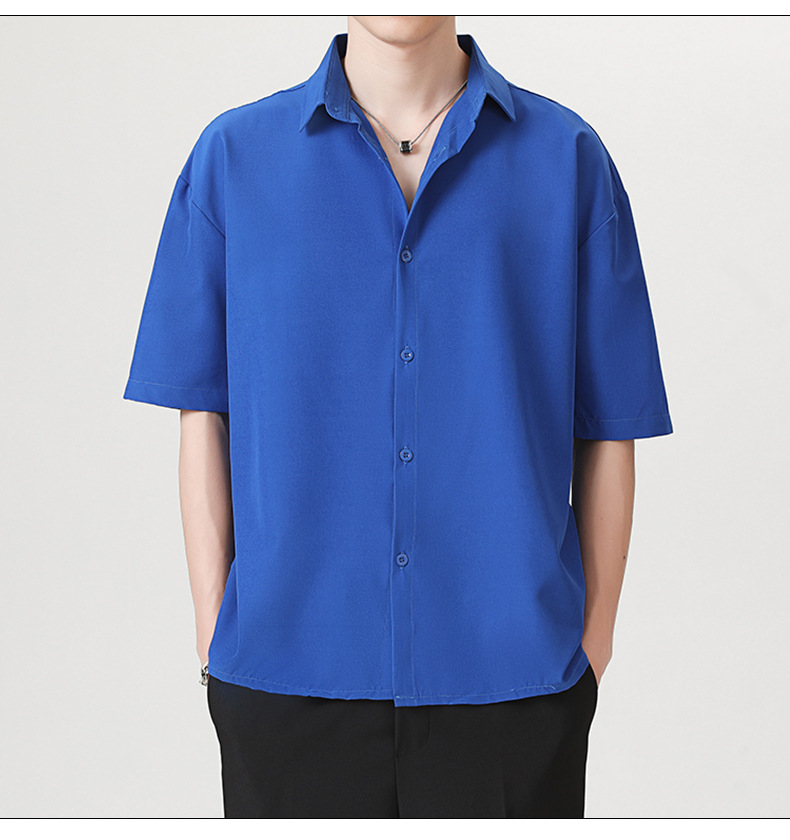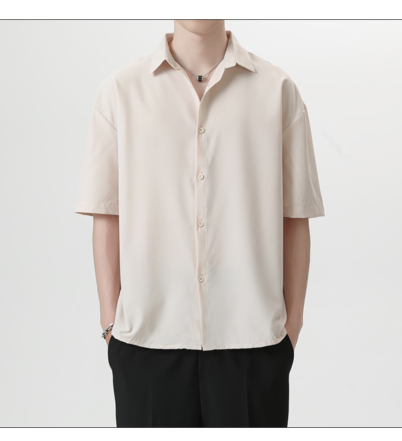 Áo sơ mi nam ngắn tay phiên bản Hàn Quốc của áo sơ mi nam lụa băng phong cách Hồng Kông áo sơ mi tay rộng ngũ quý không ủi quần áo nam chống nhăn