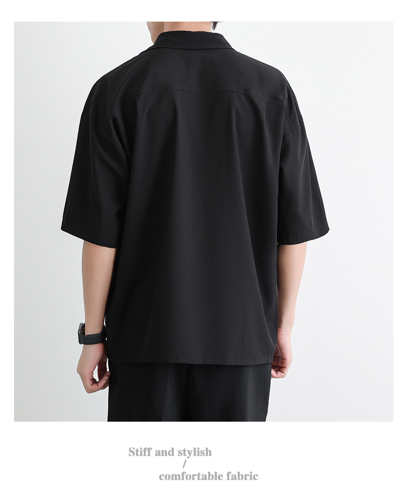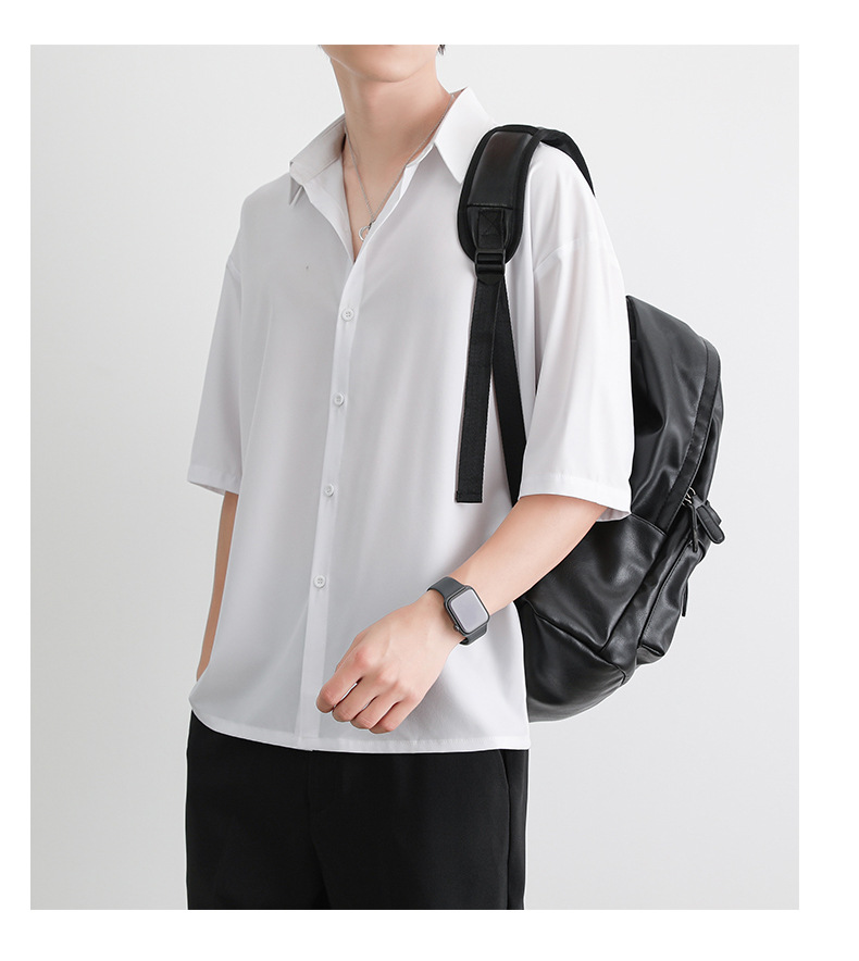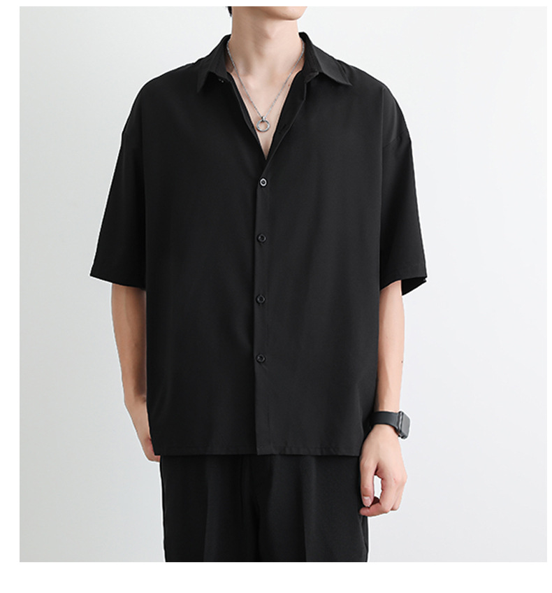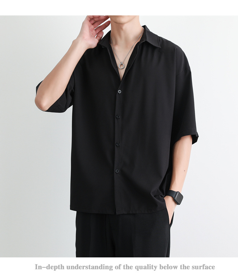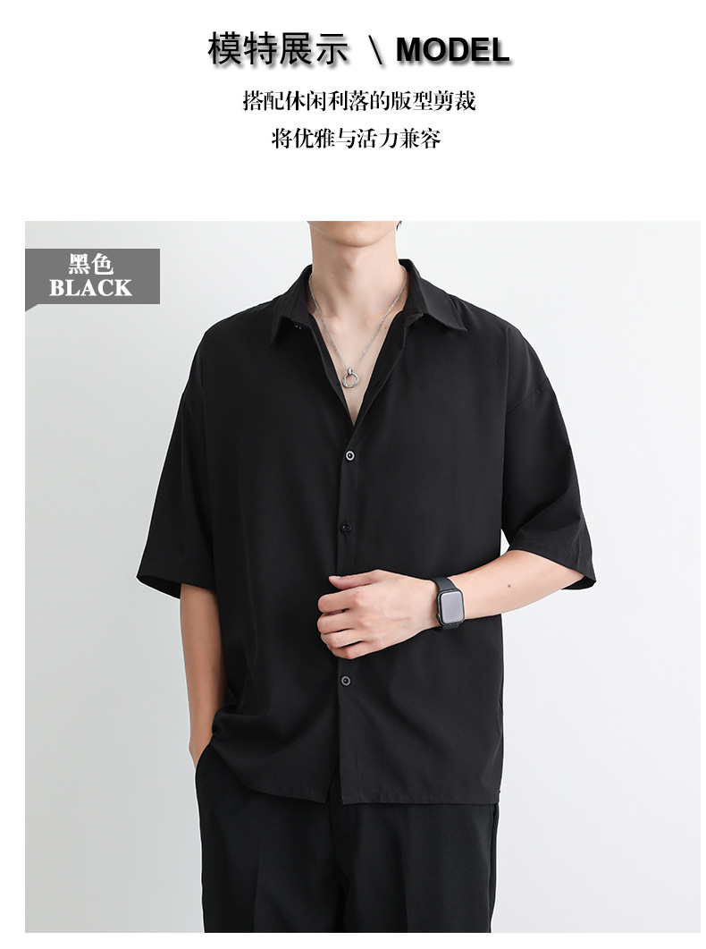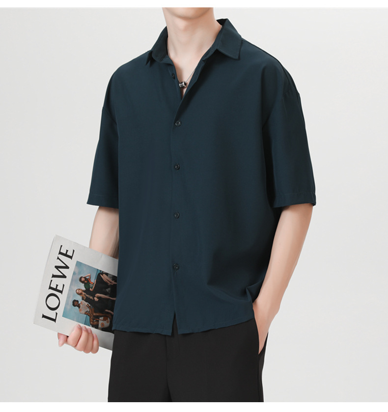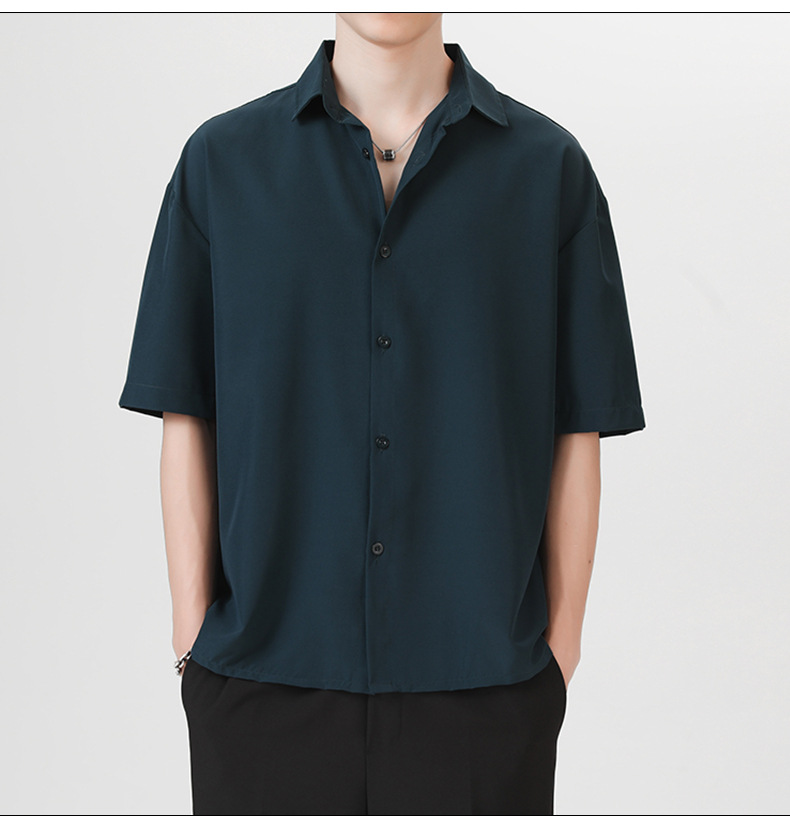 Áo sơ mi nam ngắn tay phiên bản Hàn Quốc của áo sơ mi nam lụa băng phong cách Hồng Kông áo sơ mi tay rộng ngũ quý không ủi quần áo nam chống nhăn