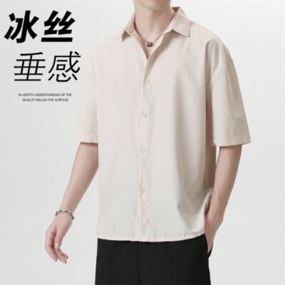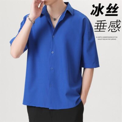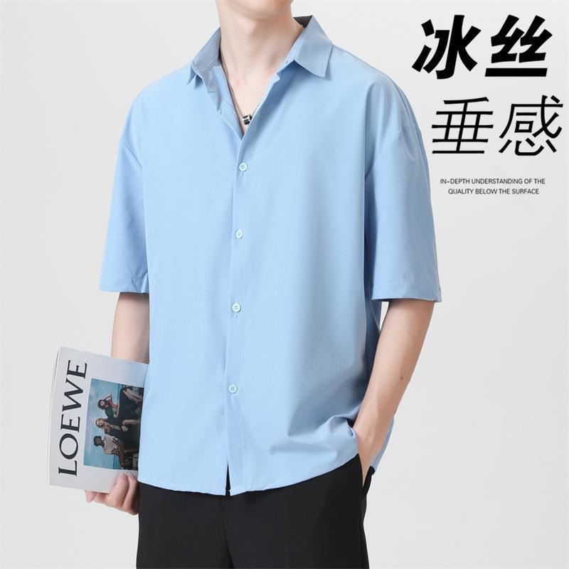 Áo sơ mi nam ngắn tay phiên bản Hàn Quốc của áo sơ mi nam lụa băng phong cách Hồng Kông áo sơ mi tay rộng ngũ quý không ủi quần áo nam chống nhăn