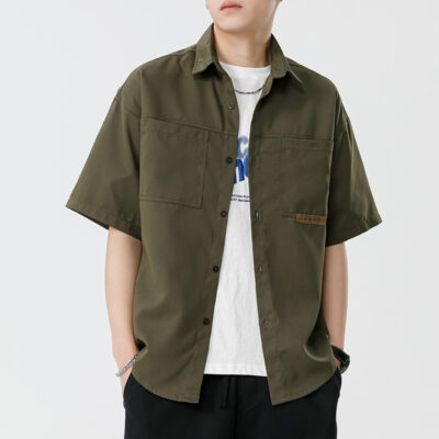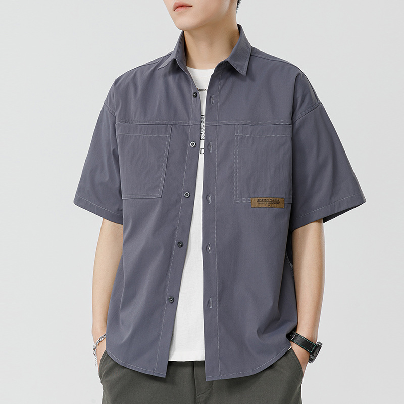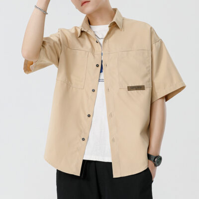 Áo Sơ Mi Nam Ngắn Tay Phong Cách Hồng Kông Mùa Hè 2023, Áo Sơ Mi Công Cụ Đẹp Trai, Giản Dị Cho Nam, Áo Sơ Mi Một Inch Áo Khoác