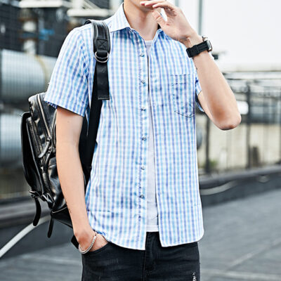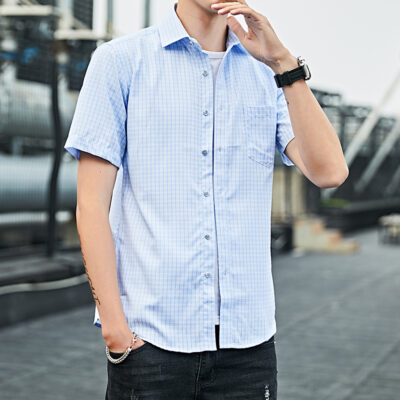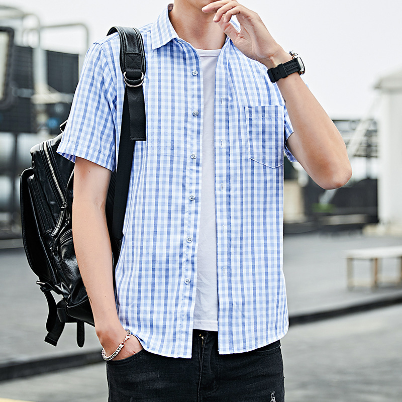 Áo sơ mi nam ngắn tay xu hướng mùa hè mới 2023 đẹp trai kẻ sọc nhỏ phá cách áo sơ mi nam ngắn tay mùa hè giản dị