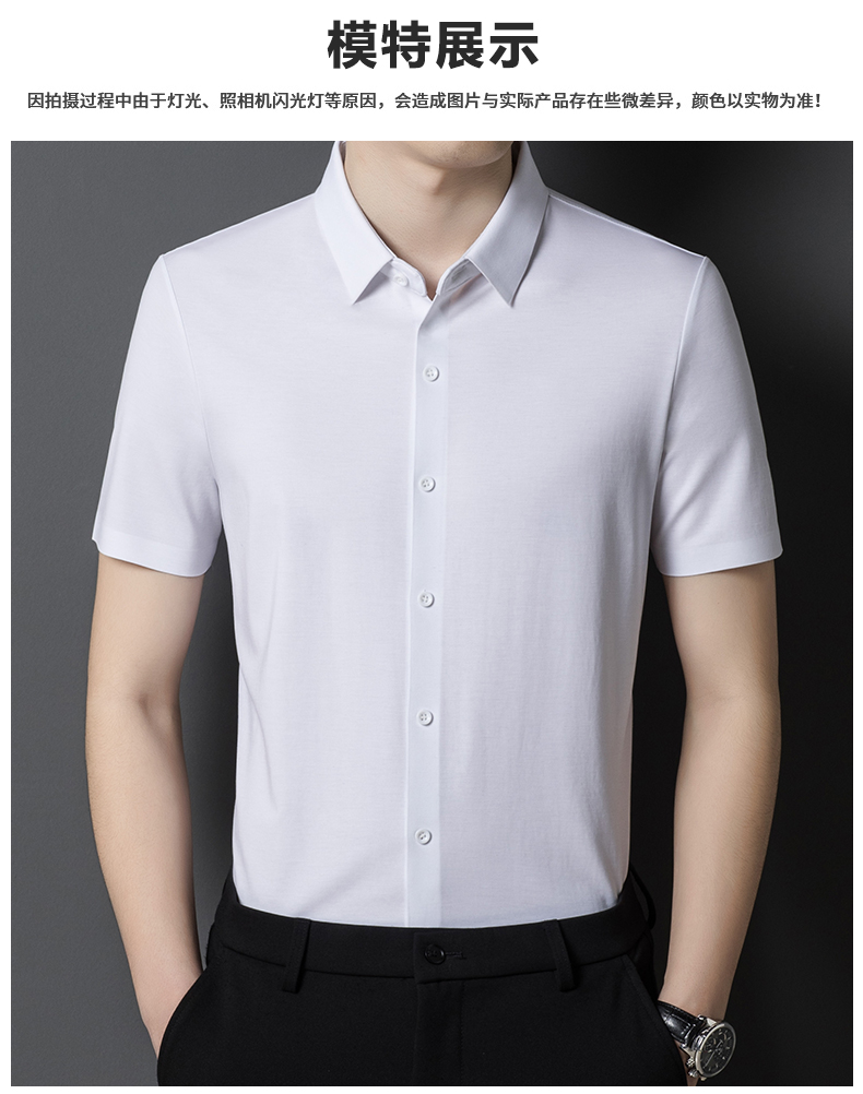 Áo sơ mi nam tay ngắn Armani trung niên mùa hè lụa dâu tằm kinh doanh trang phục trang trọng áo sơ mi co giãn lụa băng bình thường