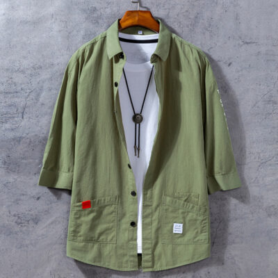 Áo sơ mi nam tay ngắn mới 7 điểm tay áo trên áo khoác thời trang Hàn Quốc hợp thời trang áo sơ mi trẻ trung giản dị