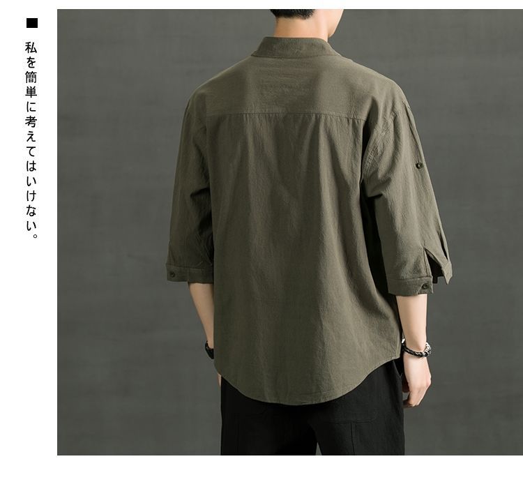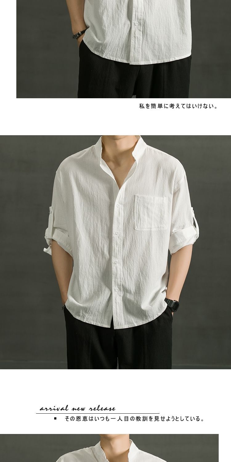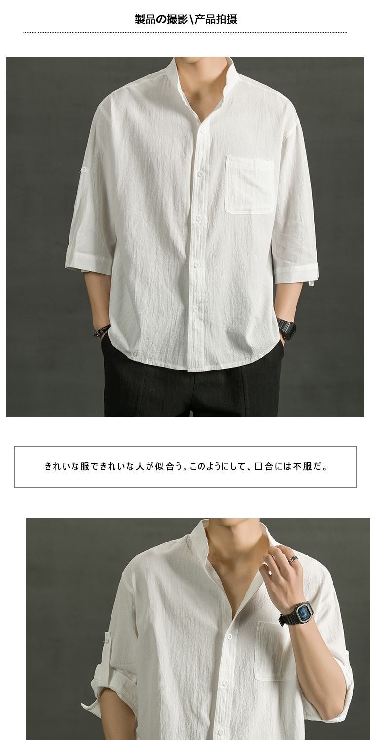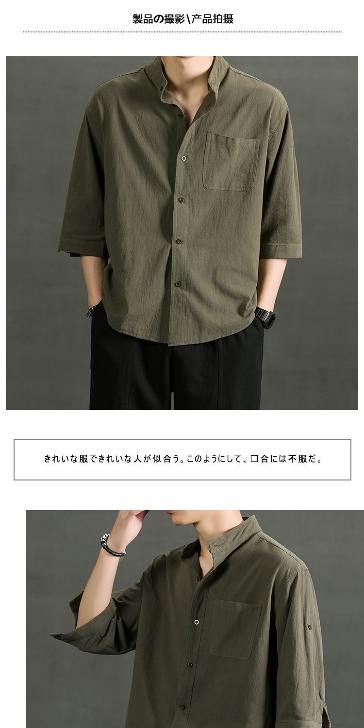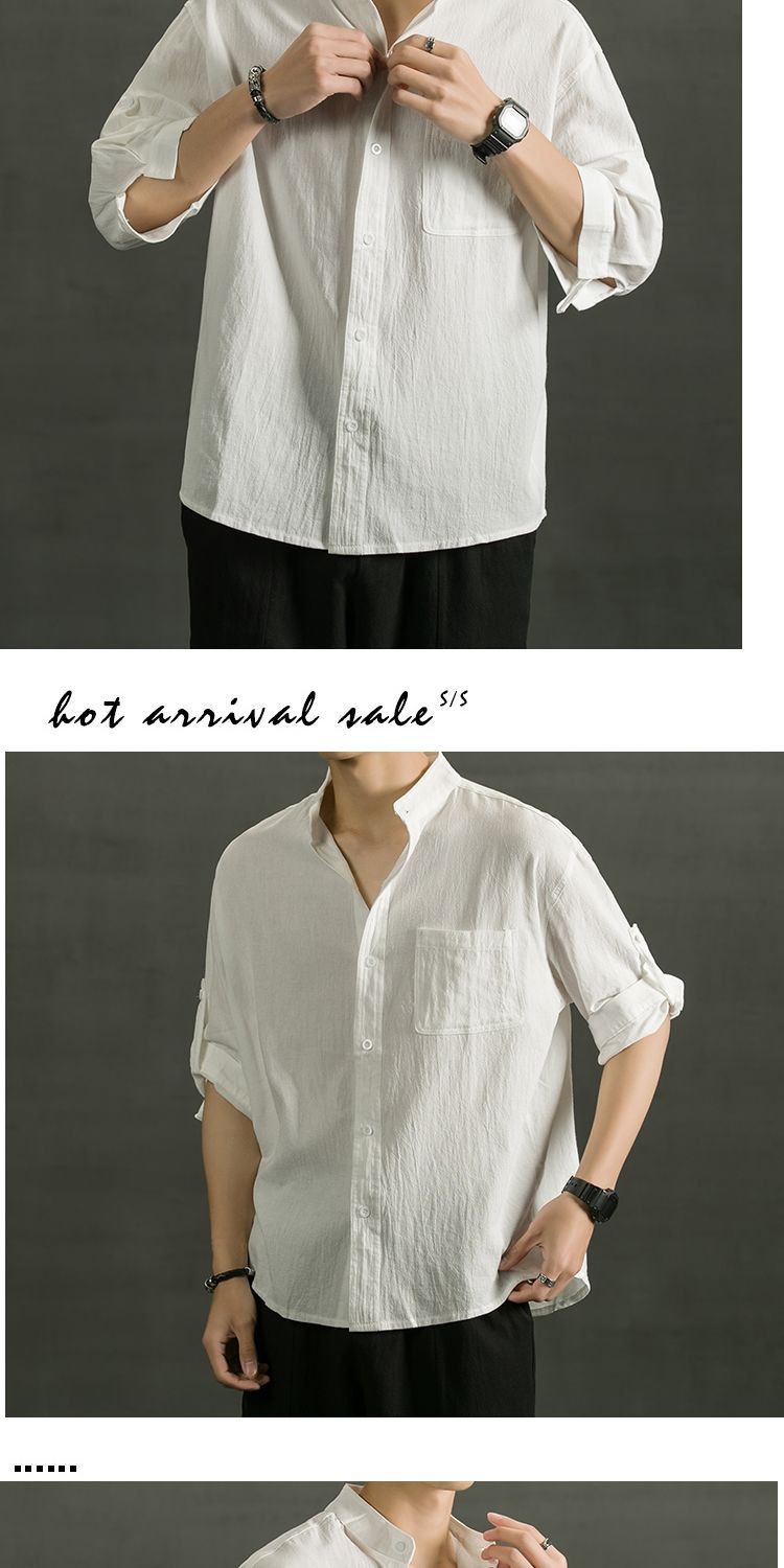Áo sơ mi ngắn tay bằng vải cotton và vải lanh nam hợp thời trang mùa hè áo sơ mi vải lanh giản dị dáng rộng màu trơn áo sơ mi nam inch phần mỏng