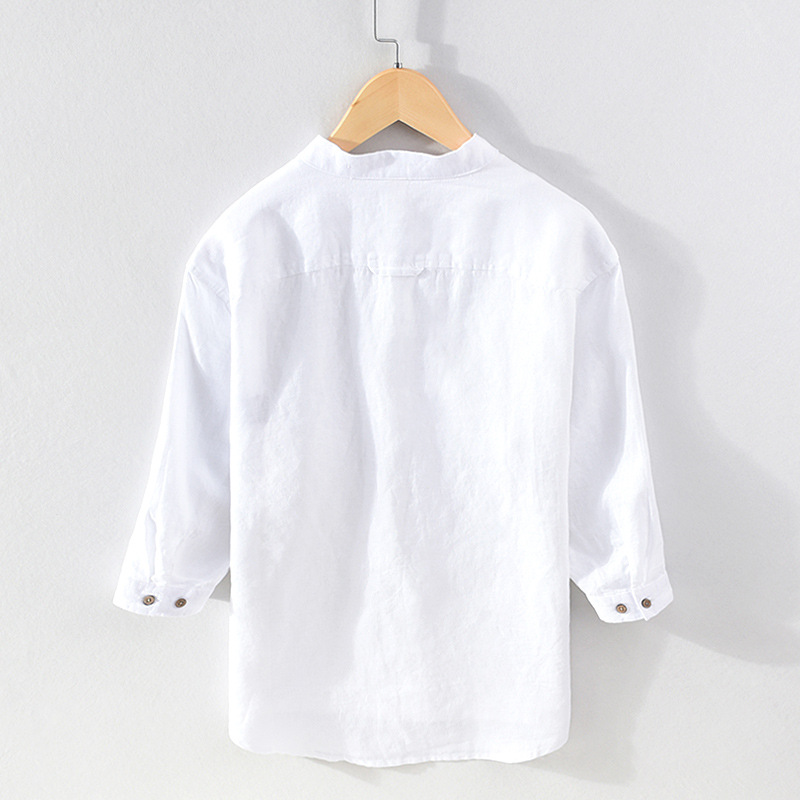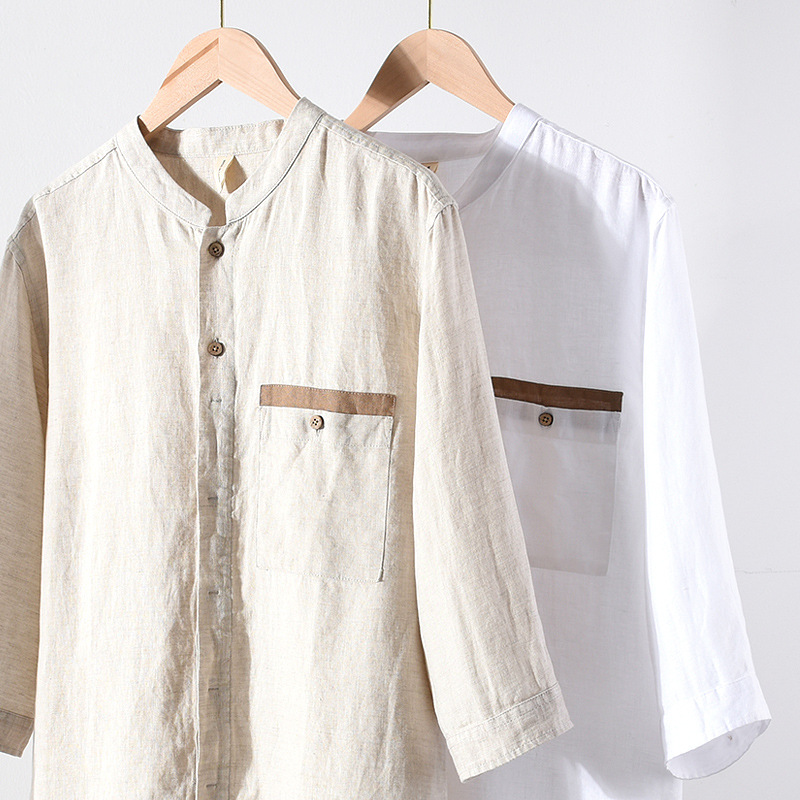 Áo sơ mi ngắn tay bằng vải lanh nam mùa hè retro phong cách Trung Hoa tay ba phần tư áo sơ mi cỡ lớn dáng rộng cổ đứng Đường phù hợp với
