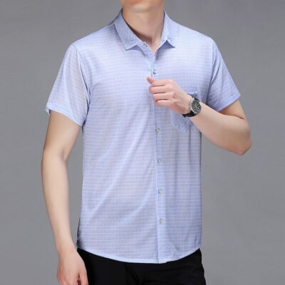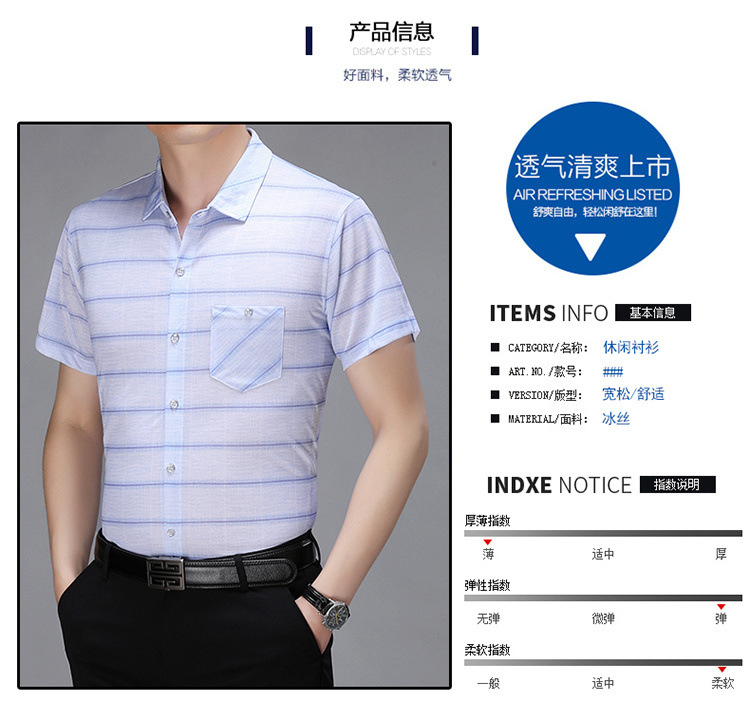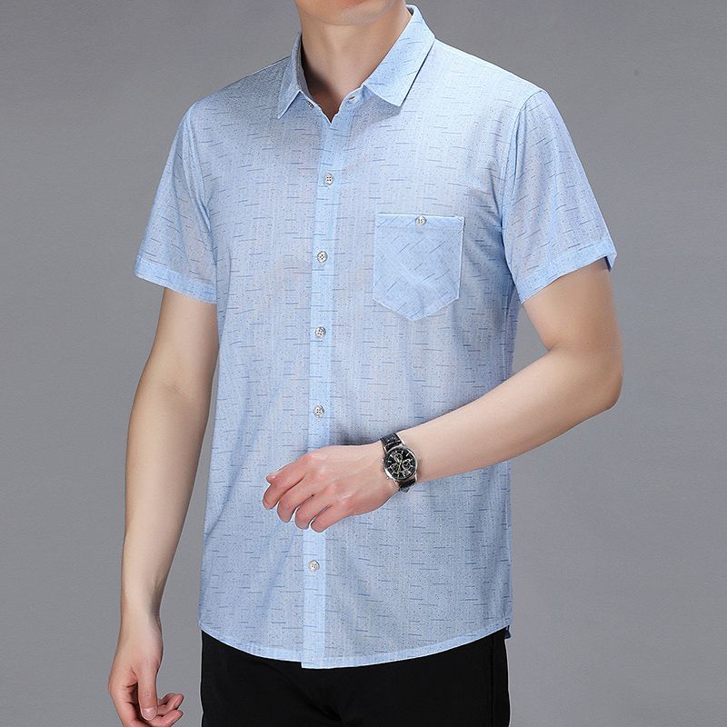 Áo sơ mi ngắn tay cỡ lớn dành cho nam giới trung niên và cao tuổi Áo sơ mi mùa hè rộng rãi của bố dành cho người trung niên phần mỏng lụa băng