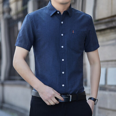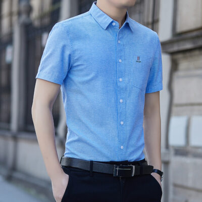 Áo sơ mi ngắn tay mùa hè nam mỏng phần phong cách Hàn Quốc hợp thời trang áo sơ mi mỏng giản dị áo sơ mi inch phù hợp với ve áo trên cùng
