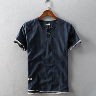 Áo Sơ Mi Ngắn Tay Mùa Hè Vải Lanh Nam Phong Cách Cổ Điển, Áo Sơ Mi Vải Lanh Cotton, Phần Mỏng, Tay Lửng, Thanh Niên, Quần Áo Nam Bán Buôn