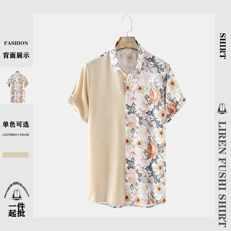 Áo sơ mi ngắn tay xuất khẩu mùa xuân hè 2023 dành cho nam in hình áo sơ mi nam thời trang