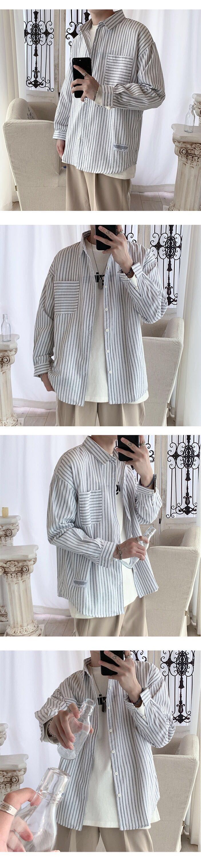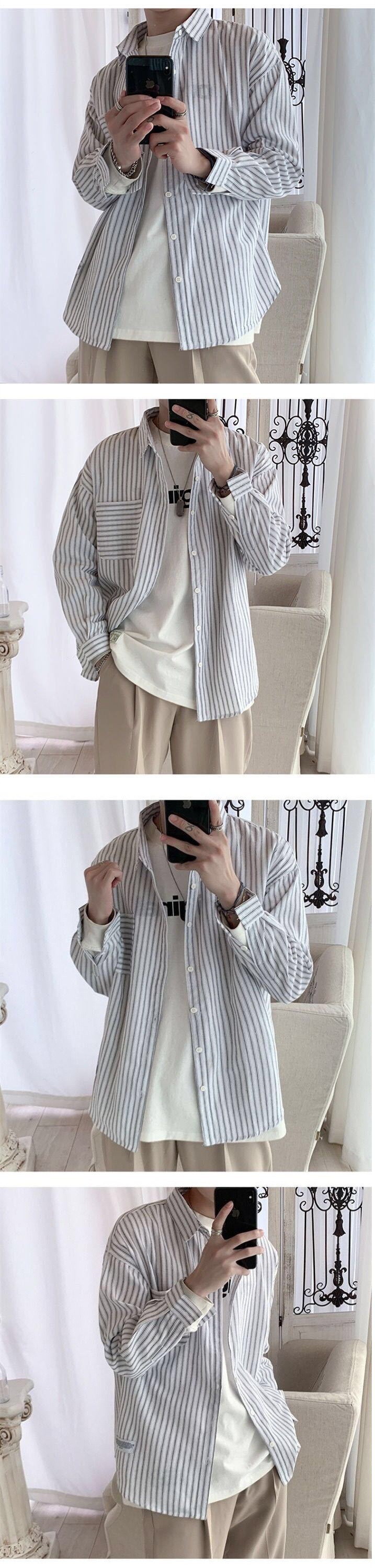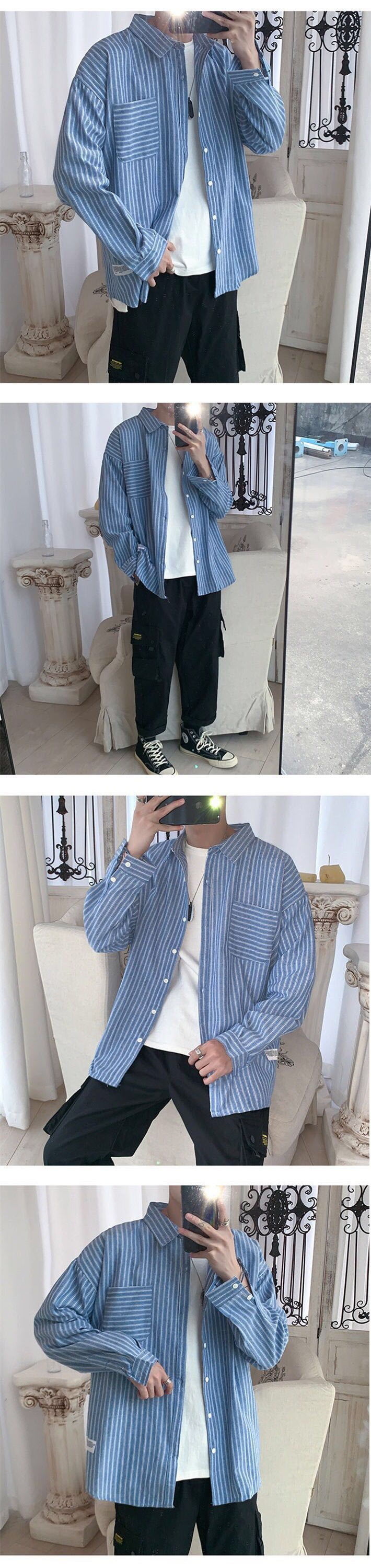Áo sơ mi sọc nam mùa xuân hè 2023 dành cho nam sinh viên phiên bản Hàn Quốc áo sơ mi inch rộng áo sơ mi nam phù hợp với áo khoác dài tay