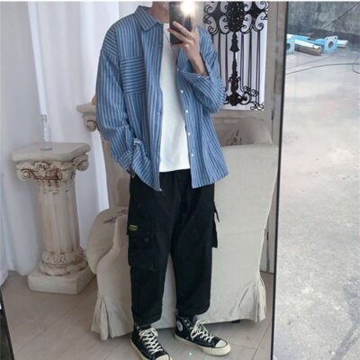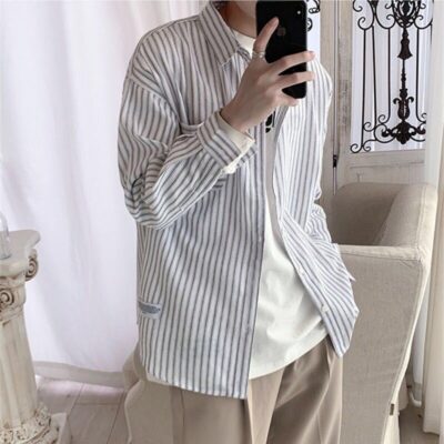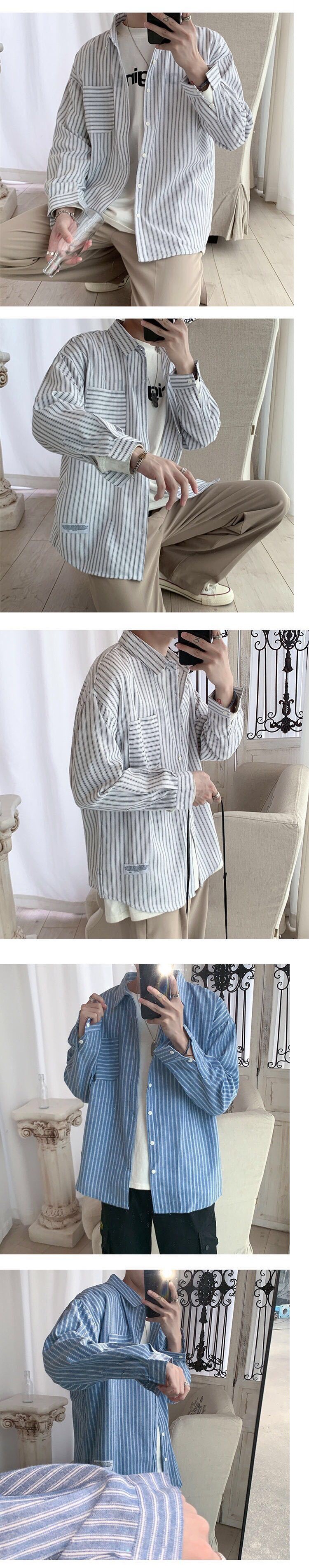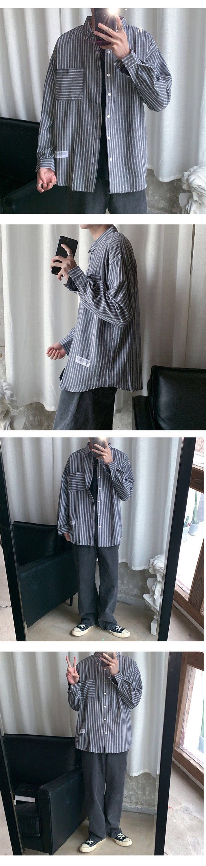 Áo sơ mi sọc nam mùa xuân hè 2023 dành cho nam sinh viên phiên bản Hàn Quốc áo sơ mi inch rộng áo sơ mi nam phù hợp với áo khoác dài tay
