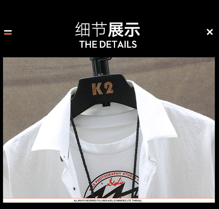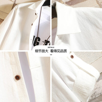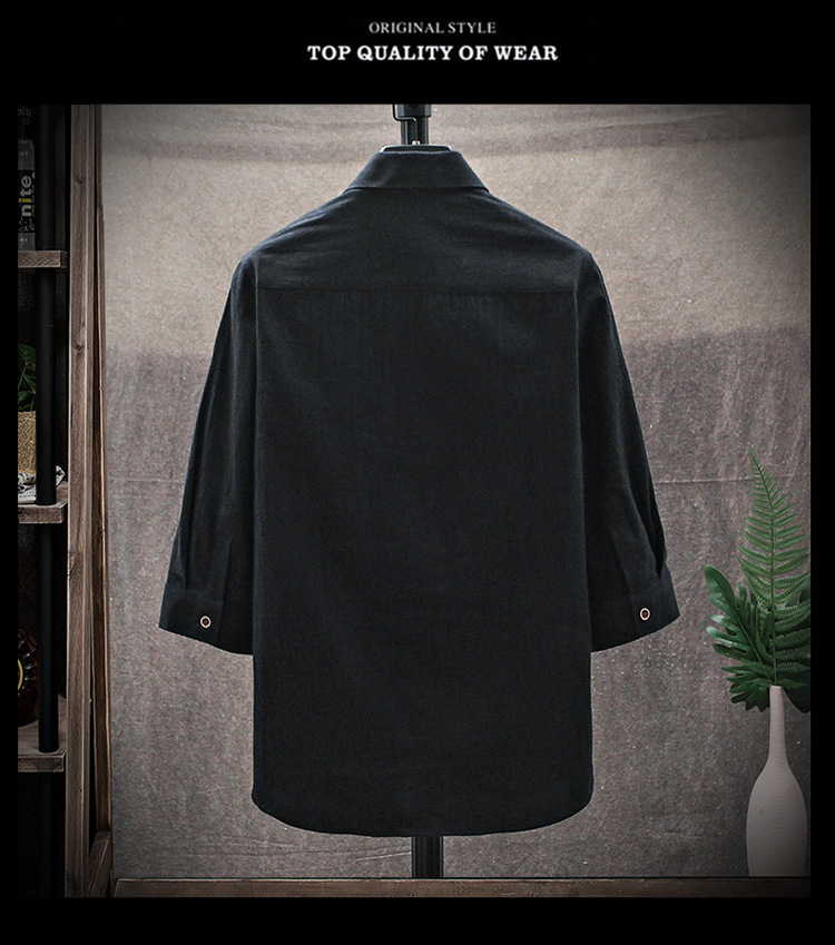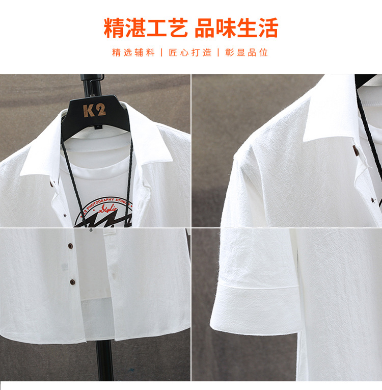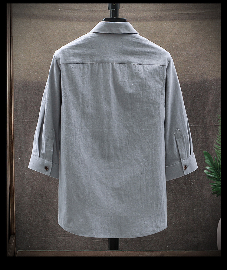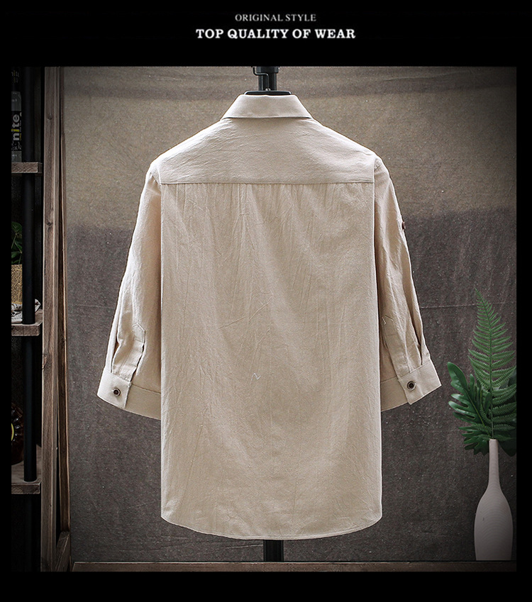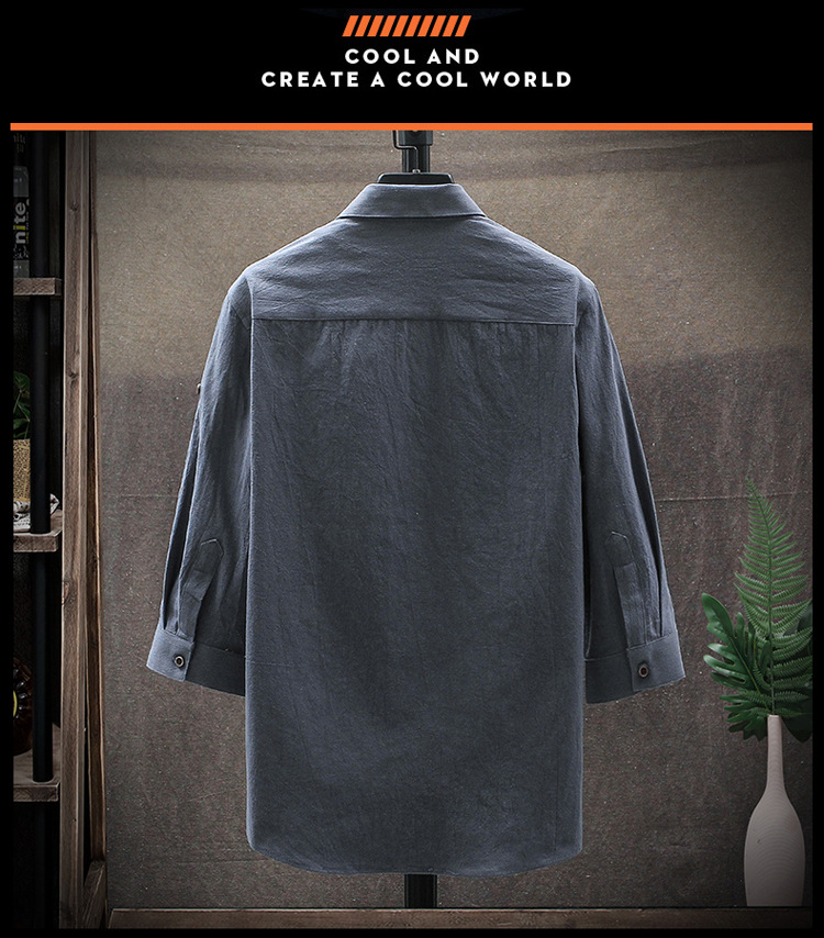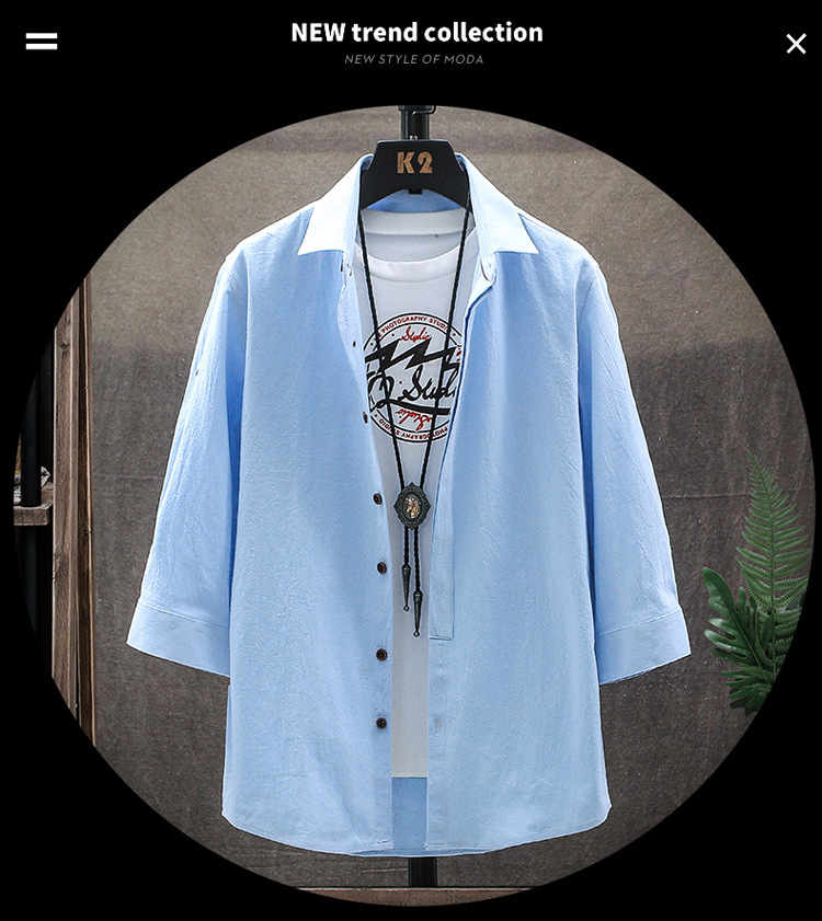 Áo sơ mi tay ba phần tư màu trơn thường ngày cho nam, quần áo cotton phù hợp với mọi lứa tuổi, màu xanh nhạt, tay áo năm phần tư, xu hướng mới mùa hè 2023
