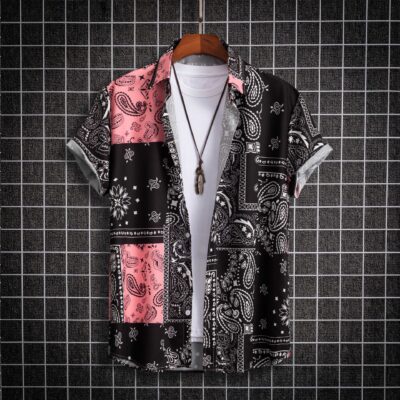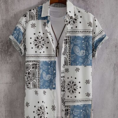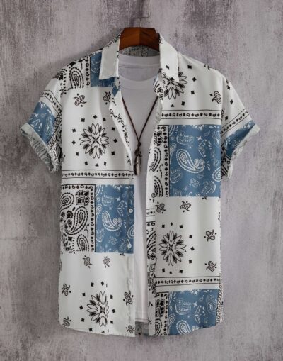 Áo sơ mi tay ngắn phong cách Paisley giản dị thời trang dành cho nam Không định vị