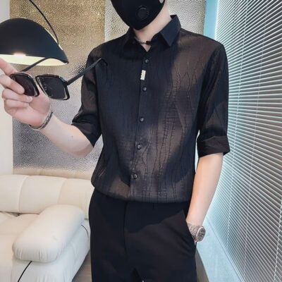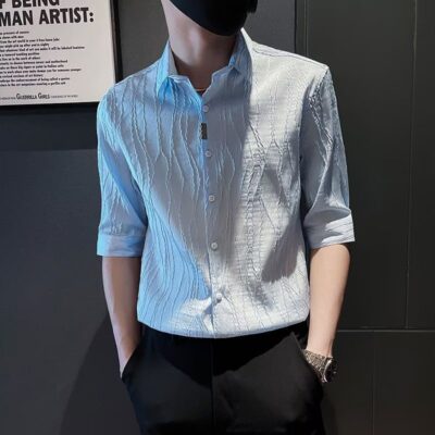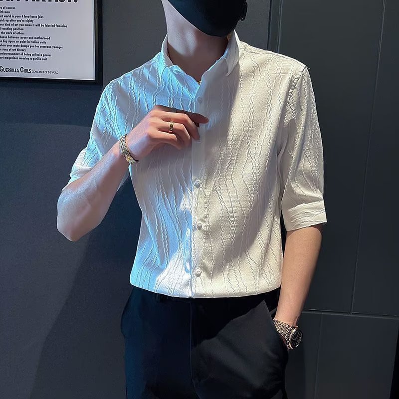 Áo sơ mi trắng cao cấp nam mùa hè áo sơ mi lụa băng mỏng hợp thời trang đẹp trai áo sơ mi nam ngắn tay màu trơn