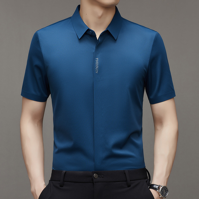 Áo Sơ Mi Túi Đôi Sơ Mi Nam Mùa Hè Mới 2023 Phần Mỏng Co Giãn Thoáng Khí Cao Cấp Quần Áo Nam Ngắn Tay