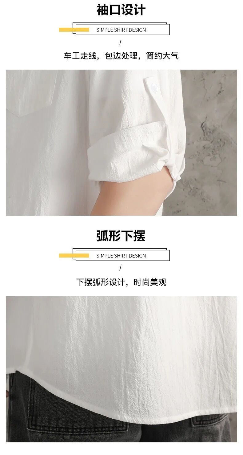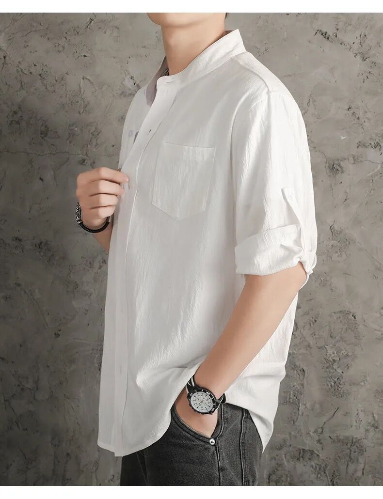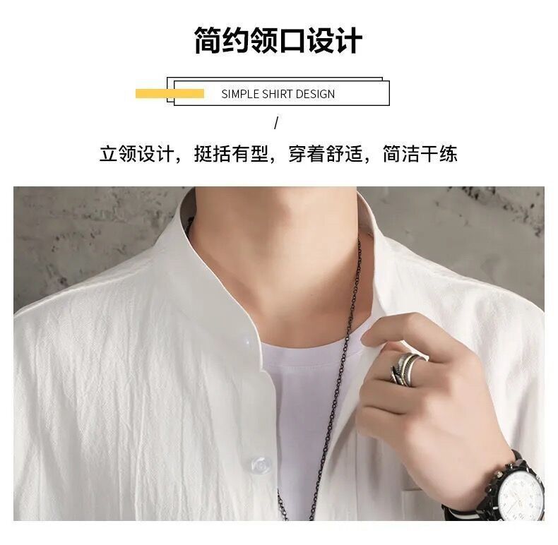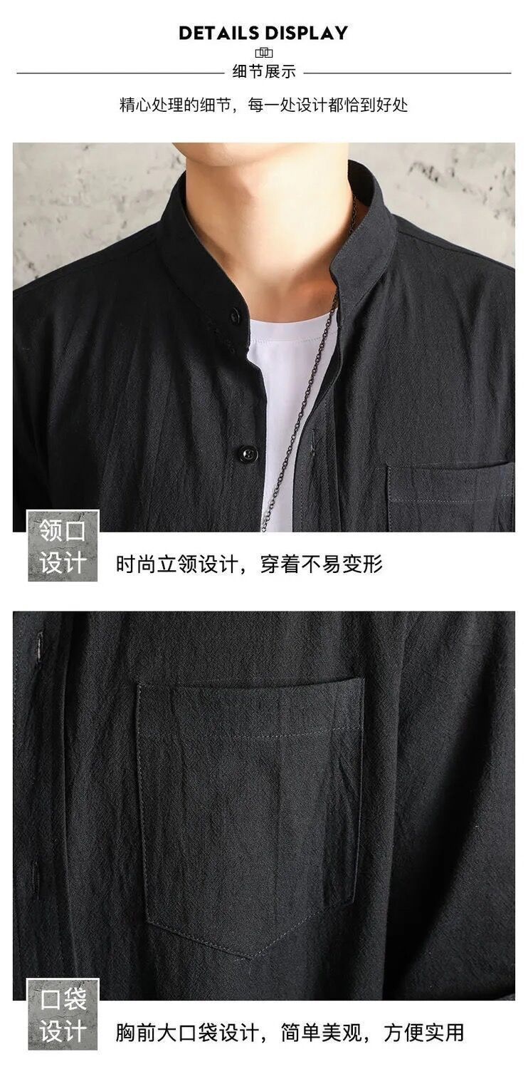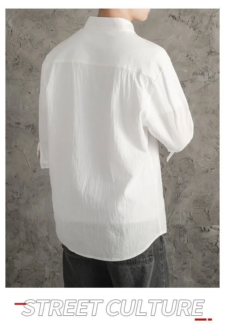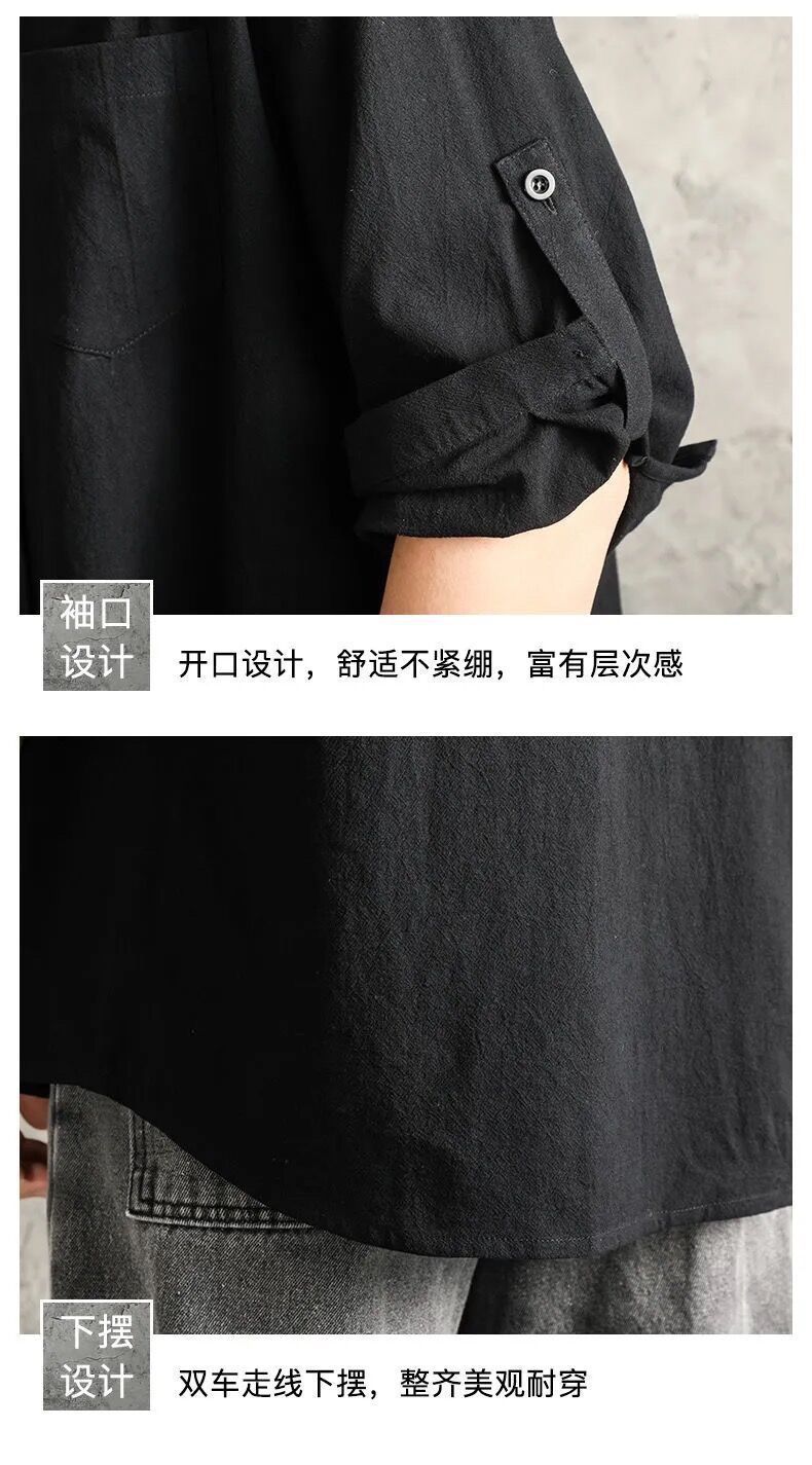 Áo sơ mi vải lanh Áo sơ mi nam Dáng rộng Plus Size Phong cách nam Tay ba phần tư Tay áo ba phần tư Áo cotton/cotton thường ngày cho nam
