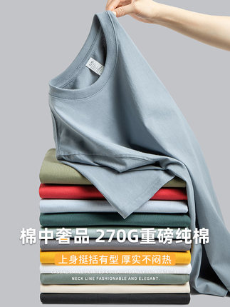 Áo thun cotton nặng 270g của nam giới ngắn tay mùa hè lỏng lẻo áo thun cotton Tân Cương cổ tròn màu đặc nửa tay áo