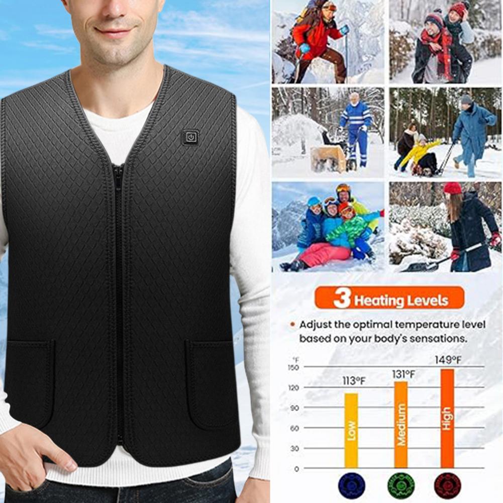Áo Vest Nam Áo Vest Unisex USB Làm Nóng Áo Vest Với Ba Bánh Răng Điều Chỉnh Cổ Chữ V Tiết Kiệm Điện Dây Kéo Khóa Cho Mùa Đông Đệm dày