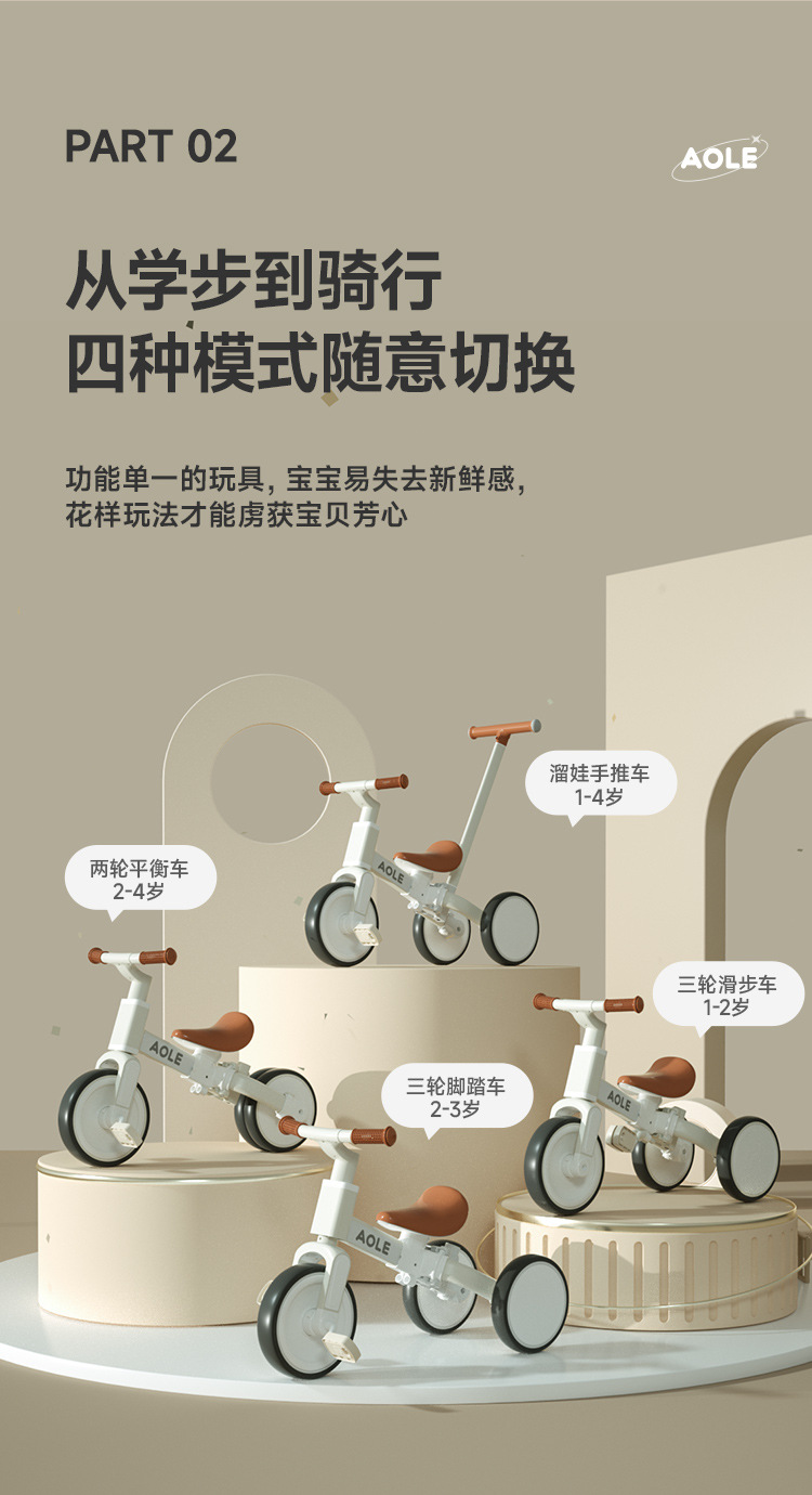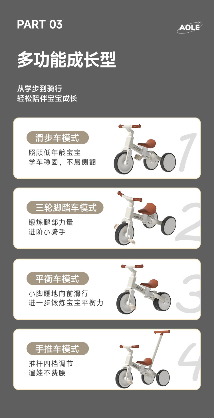 Aole Xe Đạp Ba Bánh Trẻ Em Xe Đạp Tập Đi Cho Bé Hiện Vật Có Thể Đẩy Và Đi Xe Đạp Cân Bằng Cho Bé 1-2-3 Tuổi