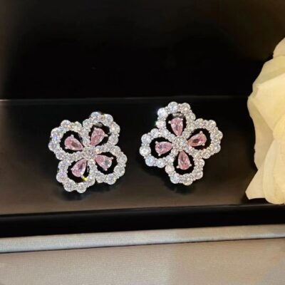 Aquamarine cỏ bốn lá bông tai vòng cổ ánh sáng sang trọng niche đầy kim cương chuỗi xương đòn ins thời trang phù hợp với vòng cổ trang sức cỏ ba lá