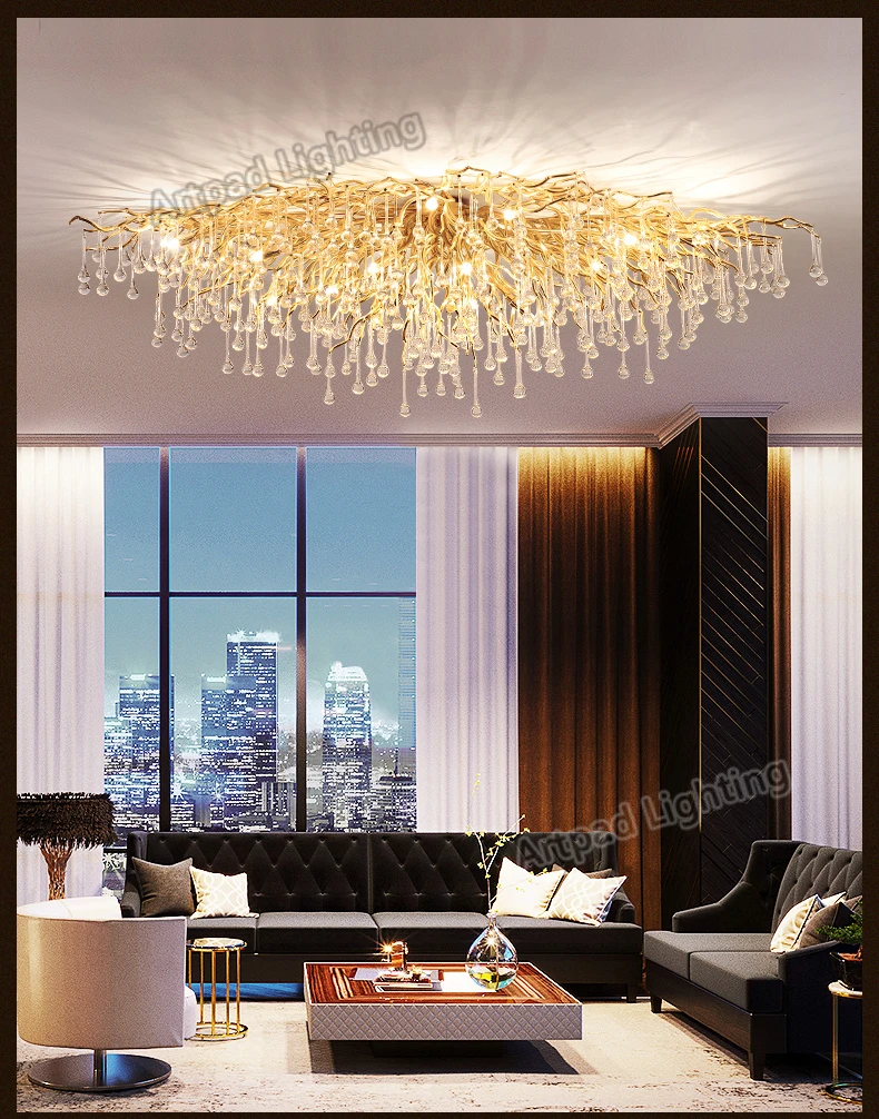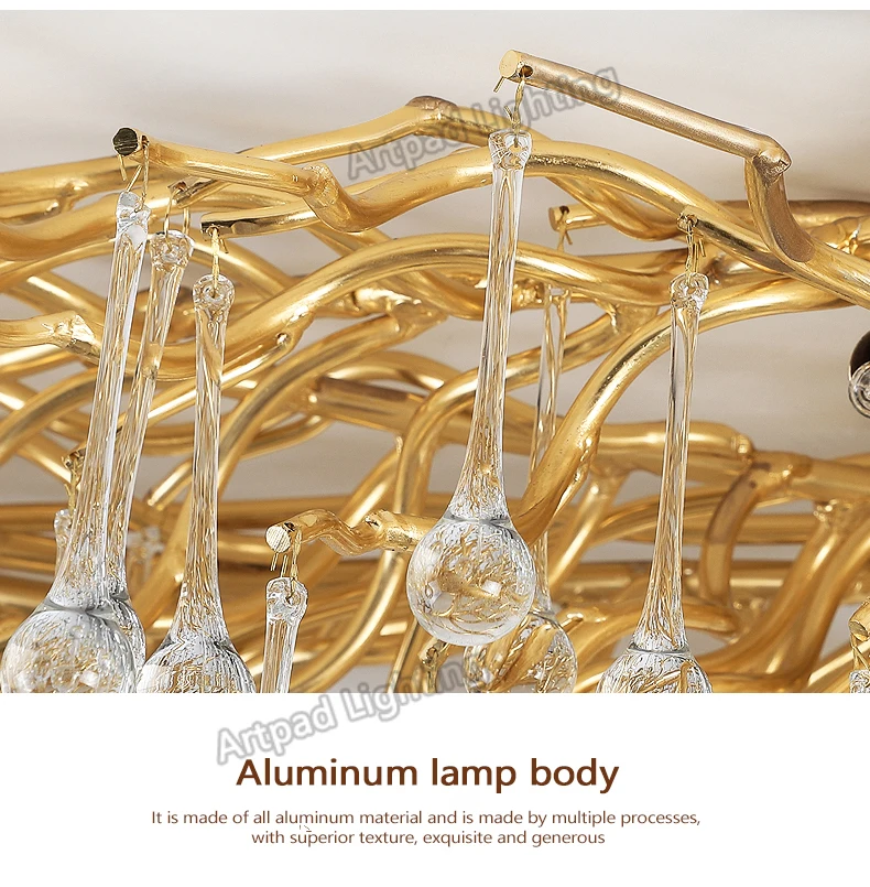 Artpad Rectangular Crystal Chandelier Living Room Lobby Hotel Light Fixtures for Celling Chandelier Modern Decorative Led Lamps