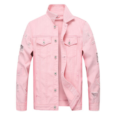 Âu Mỹ Áo Khoác Nam Denim Hàng Đầu Hợp Thời Trang Nam Mỏng Denim Punk Áo Khoác Nam Denim Áo Khoác Rách