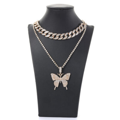 Âu Mỹ Bán Chạy Phóng Đại Vi Khảm Kim Cương Giả Vòng Cổ Hình Học Nữ Retro Phù Hợp Với Cuba Dây Chuyền Lớn Vòng Cổ Bướm Bán Buôn