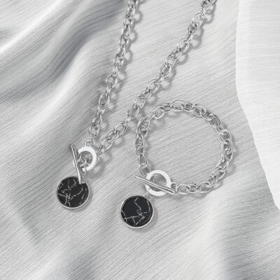 Âu Mỹ cá tính tối giản vòng chuỗi xương quai xanh chuỗi đá cẩm thạch ngắn vòng cổ kết hợp phụ kiện vòng tay