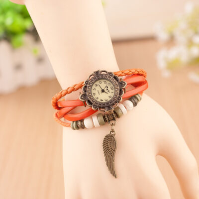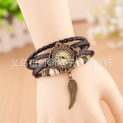Âu Mỹ Hàn Quốc Thời Trang Retro Đồng Hồ Vòng Tay Đôi Cánh Thiên Thần Vòng Tay Đồng Hồ Dây Da Đồng Hồ Nữ Đồng Hồ