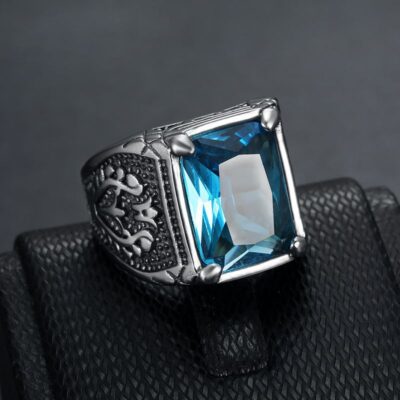 Âu Mỹ Mới Punk Retro Nhẫn Thép Không Gỉ 316 Khảm Nhiều Màu Đá Quý Họa Tiết Hoa Tulip Nhẫn Nam