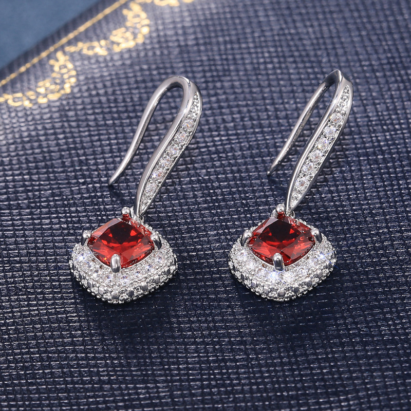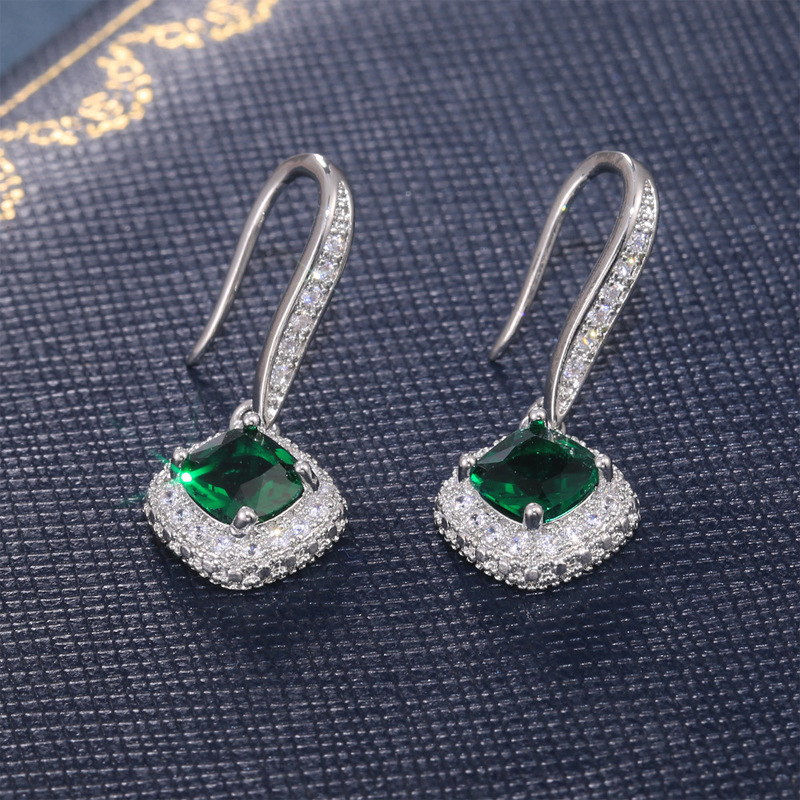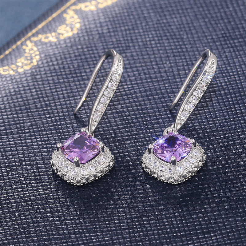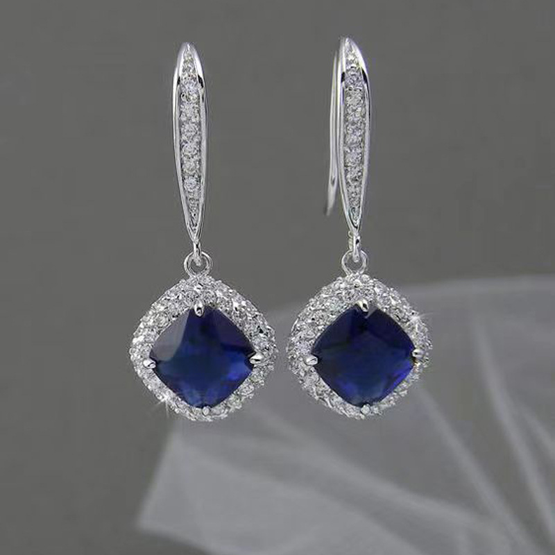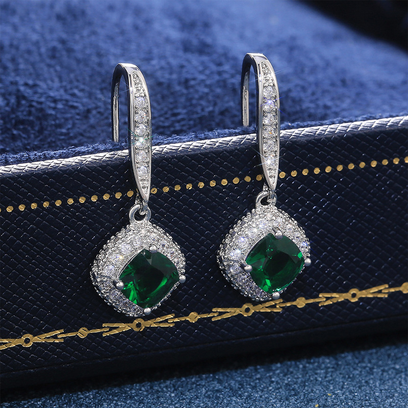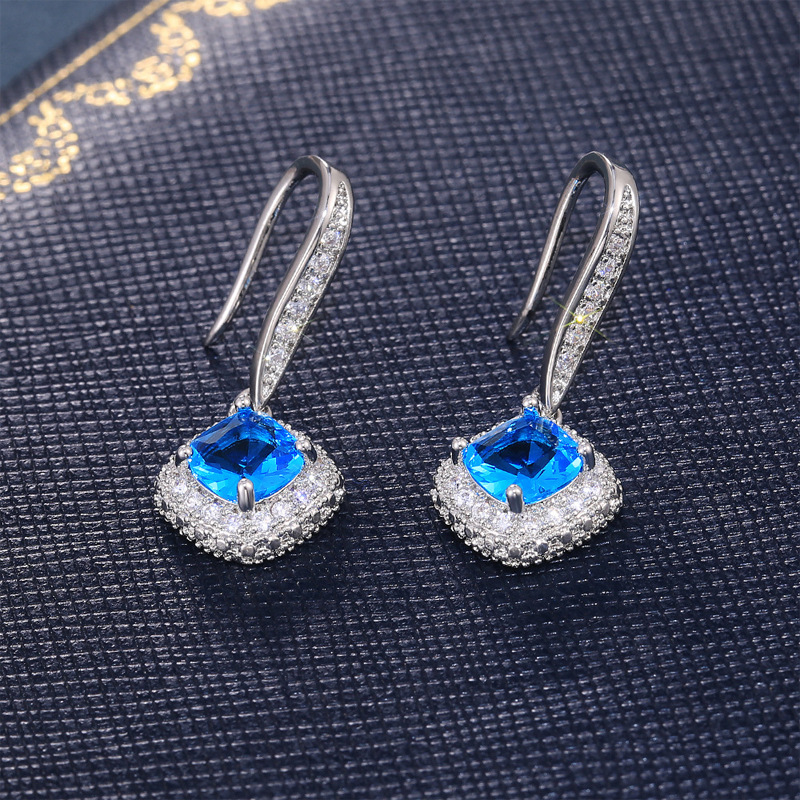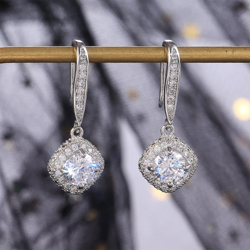 Âu Mỹ Trang Sức Thời Trang Chúc Mới Amazon AliExpress eBay Phổ Biến Kim Cương Đá Vuông Zircon Bông Tai