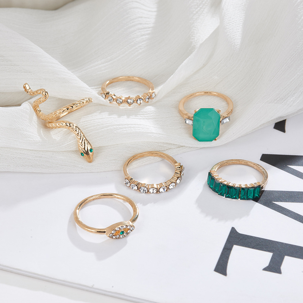 Âu Mỹ Xuyên Biên Giới Bohemian Nhẫn 6 Món Kết Hợp Phù Hợp Với Nhẫn Nhẫn Cá Tính Đá Quý Rắn Nhẫn