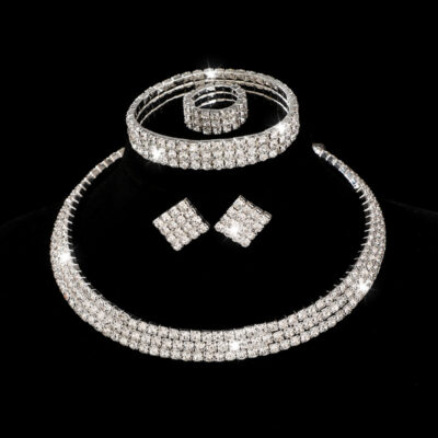 Âu Mỹ Xuyên Biên Giới Full Kim Cương Bông Tai Vòng Cổ Vòng Tay 4 Kim Cương Giả Rỗng Ra Vòng Cổ Kim Cương cô Dâu Phù Hợp Với