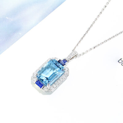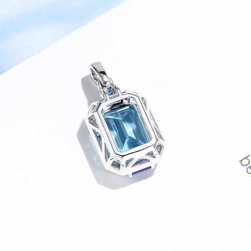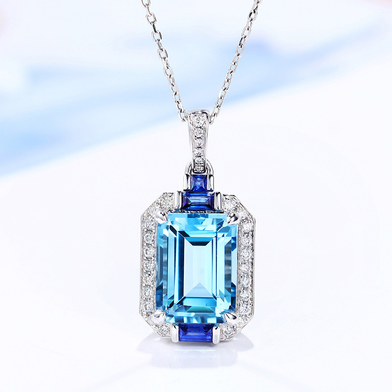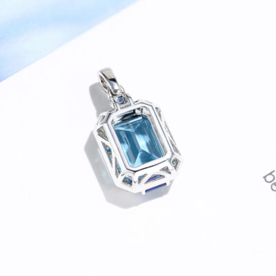 Aurora Blue Trang sức cao cấp Giả Topaz Aquamarine Mặt dây chuyền Công chúa sang trọng Solitaire Hai tông màu Mặt dây chuyền Kho báu đầy màu sắc