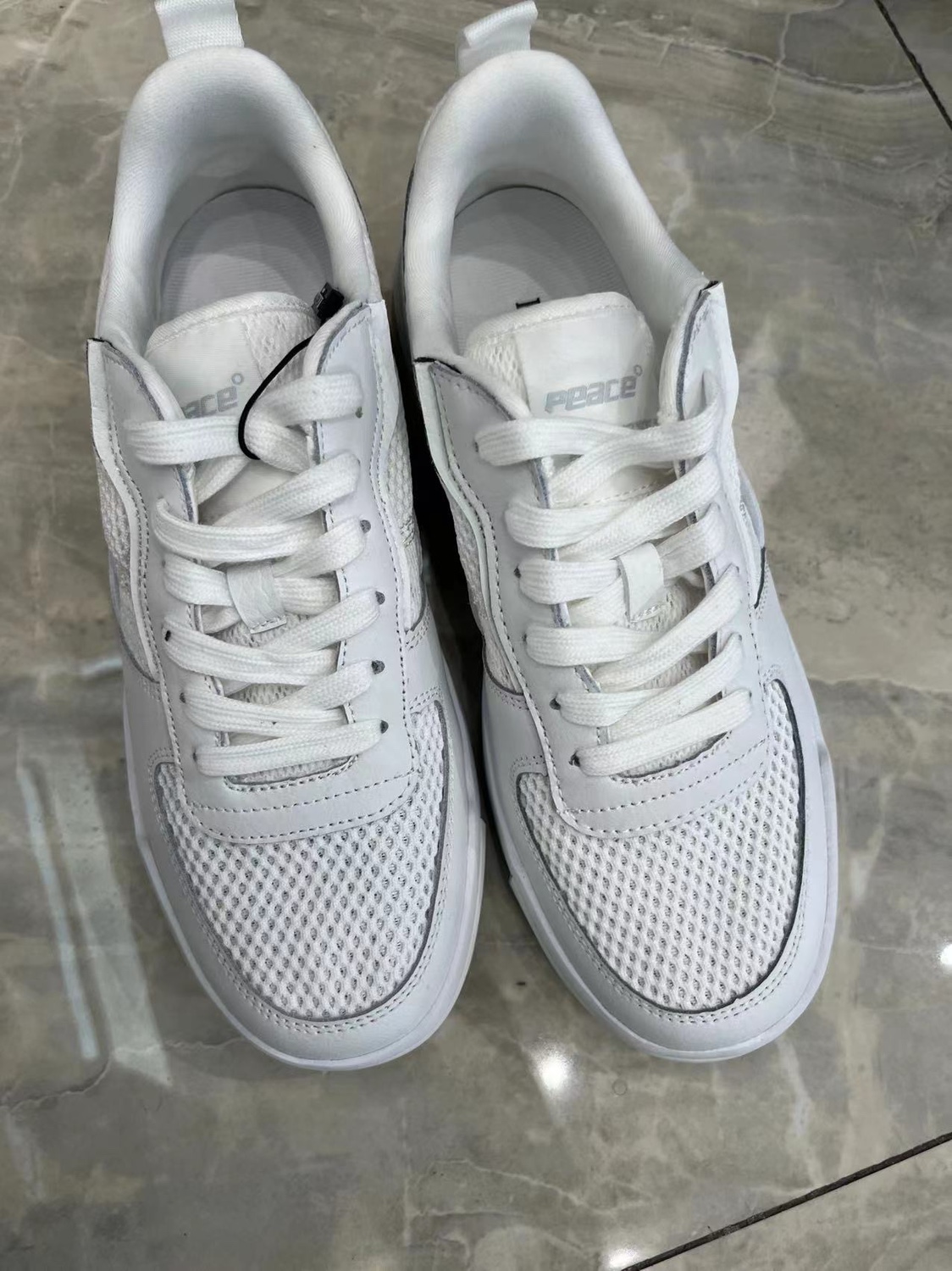 B2ZDC2109 Peacebird Men’s 2022 Summer New White Trend Ren Up Round Toe Leather Casual Shoes