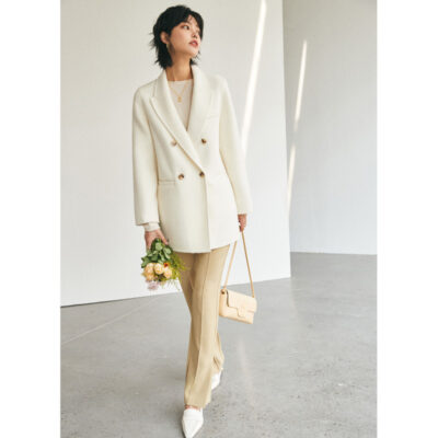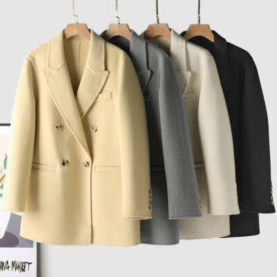 Ba chiều mỏng kiểu Pháp có ve áo đôi phù hợp với áo khoác nữ chất liệu len cao cấp hòa tan trong nước, áo khoác nylon hai mặt