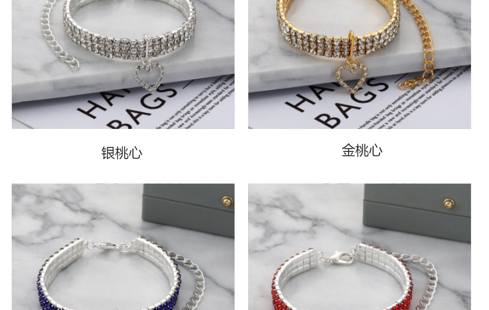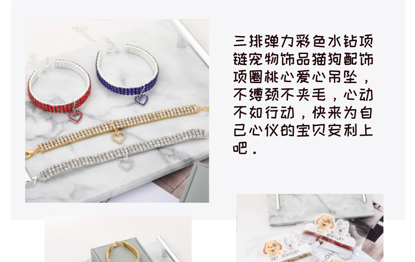 Ba Hàng Co Giãn Màu Vòng Cổ Thú Cưng Trang Sức Chó Mèo Phụ Kiện Cổ Đào Trái Tim Tình Yêu Mặt Dây Chuyền