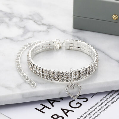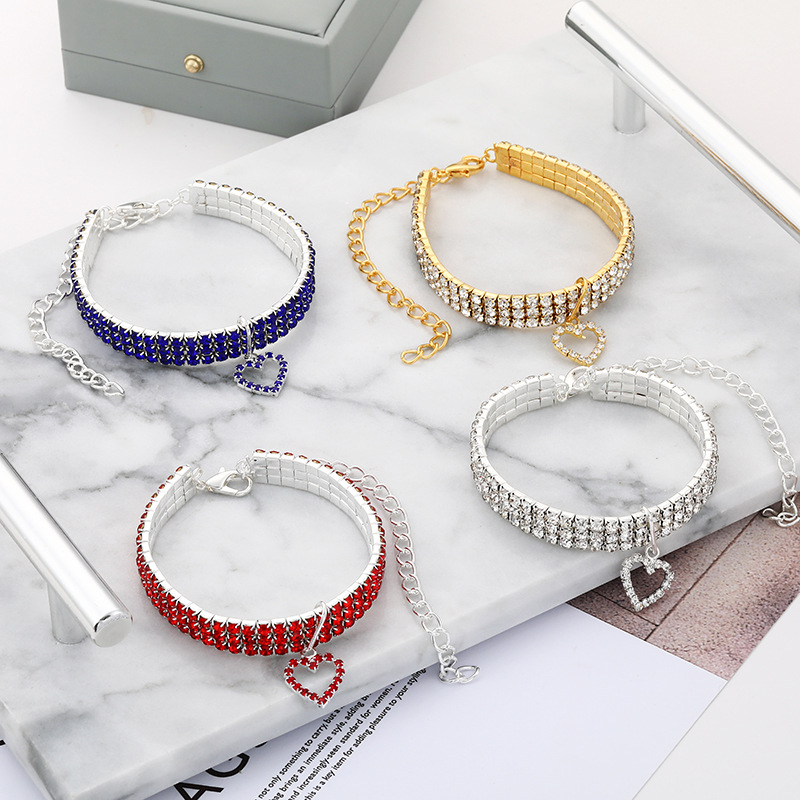 Ba Hàng Co Giãn Màu Vòng Cổ Thú Cưng Trang Sức Chó Mèo Phụ Kiện Cổ Đào Trái Tim Tình Yêu Mặt Dây Chuyền
