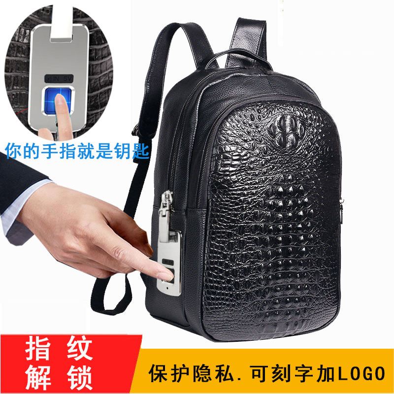 Ba Lô Da Cao Cấp Vân Tay Mở Khóa Túi Nam Họa Tiết Cá Sấu Lớp Trên Da Bò Kinh Doanh Du Lịch Ba Lô Máy Tính
