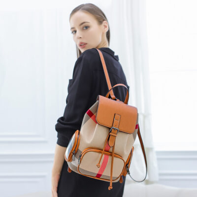 Ba Lô Da Nữ 2023 Kẻ Sọc Thời Trang Công Suất Lớn Cổ Ba Lô Nữ Đơn Giản Túi Du Lịch Phổ Biến Xu Hướng