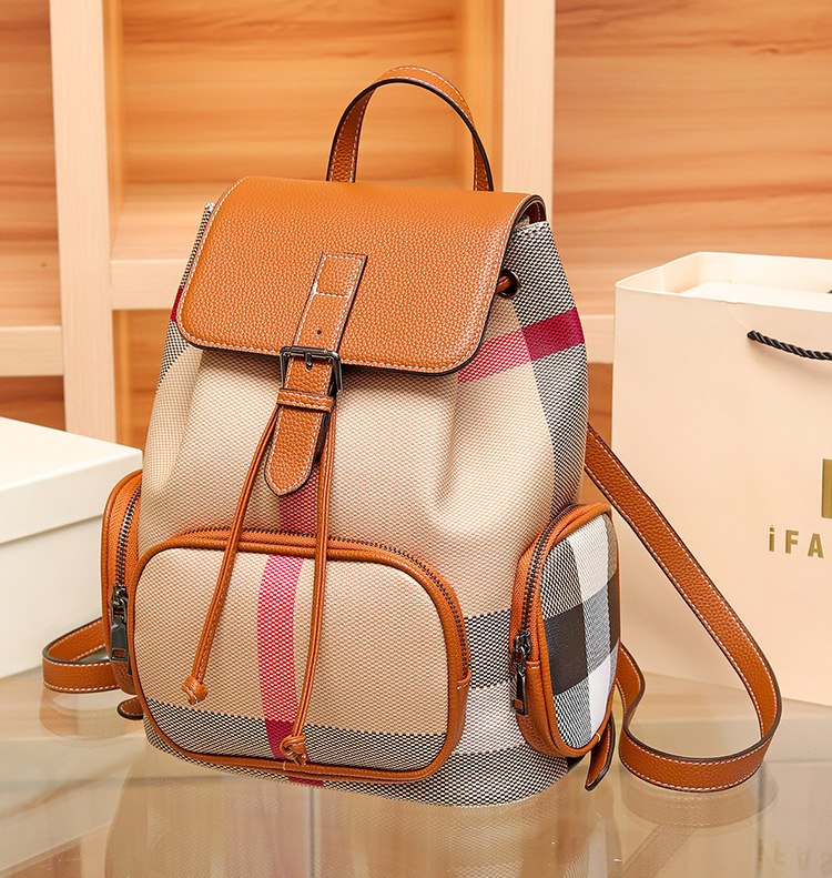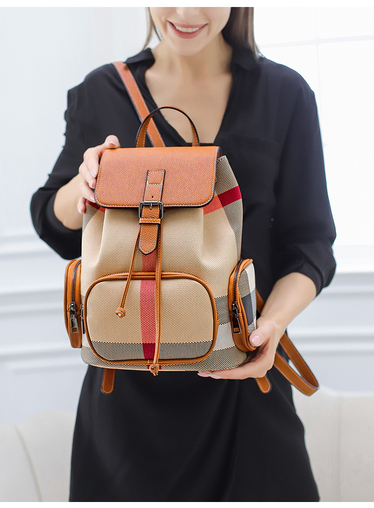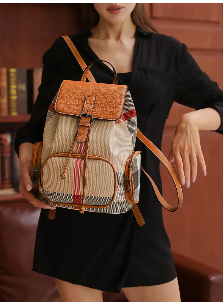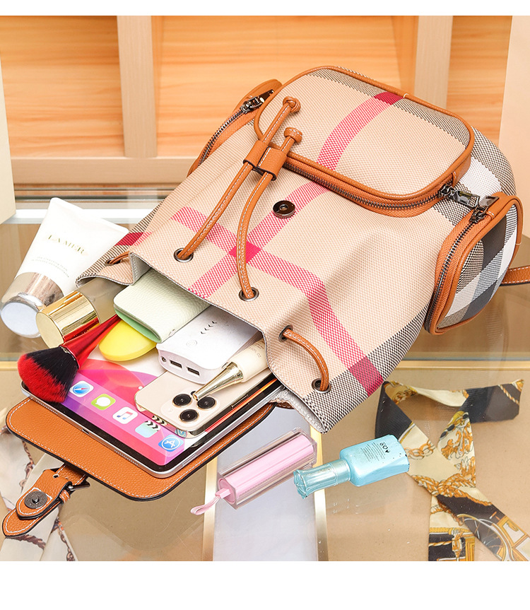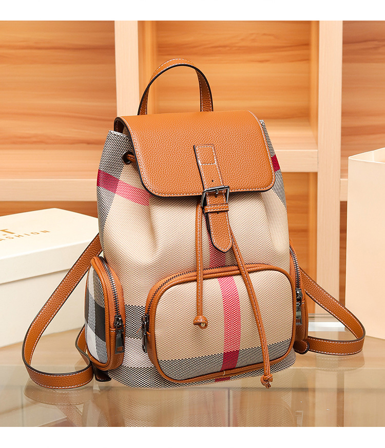 Ba Lô Da Nữ 2023 Kẻ Sọc Thời Trang Công Suất Lớn Cổ Ba Lô Nữ Đơn Giản Túi Du Lịch Phổ Biến Xu Hướng