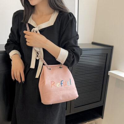 Ba lô dây rút dành cho nữ niche ins ba lô thêu chữ công suất lớn dây chuyền đa năng vai đơn Messenger túi xô