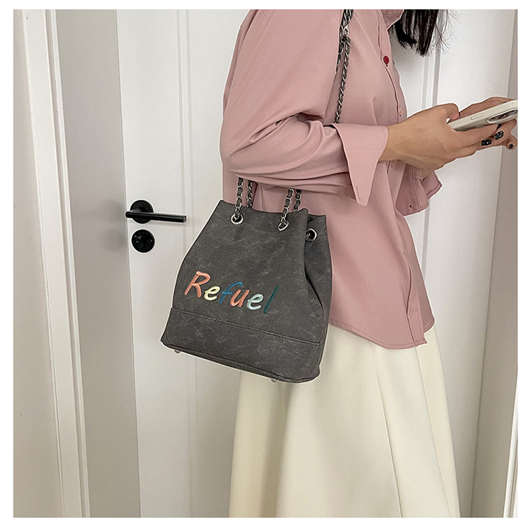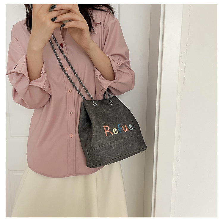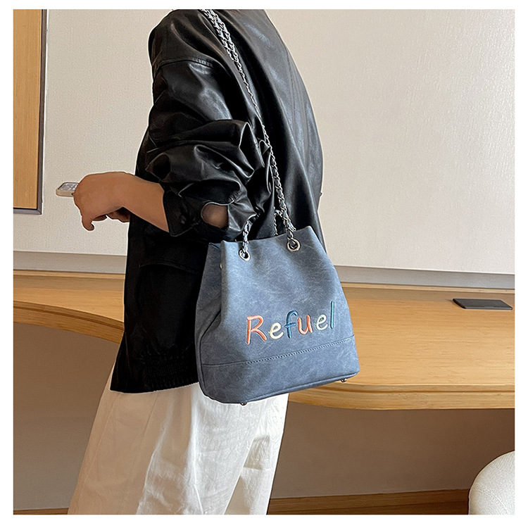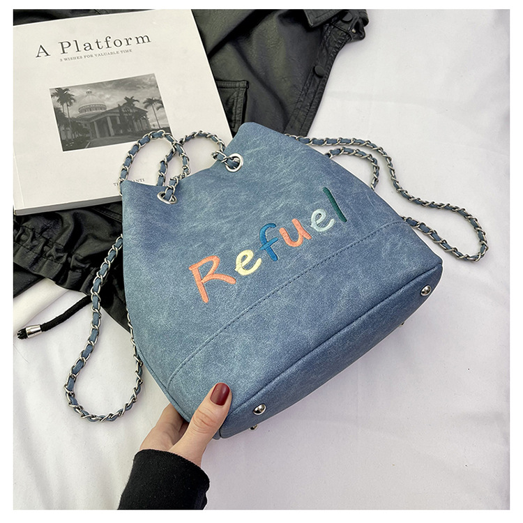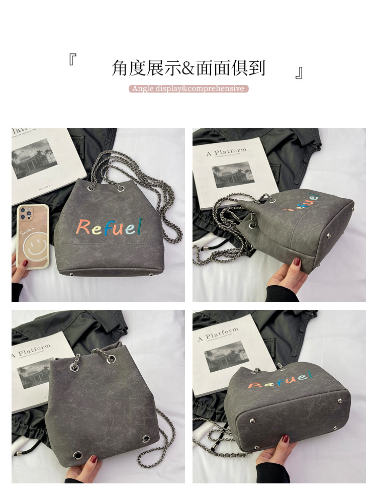 Kích thước túi: Lớn Chất liệu lót: Polyester Mã sản phẩm: 0000 Thương hiệu: Áp dụng Cảnh: Sắp xếp hàng ngày Màu sắc: Hồng/Xanh lam/Xám/Xám Mùa hè Độ cứng: Mềm Chất liệu: PU Hình dạng túi: Loại xô Phương pháp mở: Túi dây rút Cấu trúc bên trong: Di động Túi đựng điện thoại Yếu tố phổ biến: Chữ cái/Hình thêu/Chỉ khâu/Dây xích/Chuỗi phong cách: Xu hướng đường phố Số lượng dây đeo vai: Đơn Có hoặc không có lớp xen kẽ: không