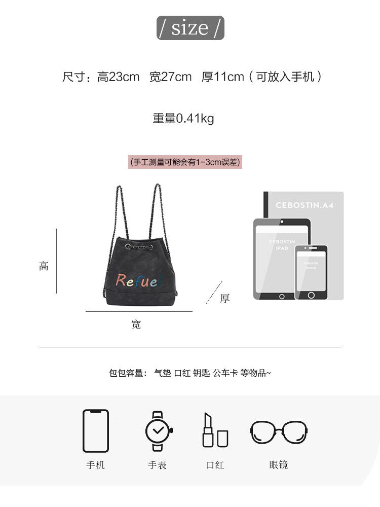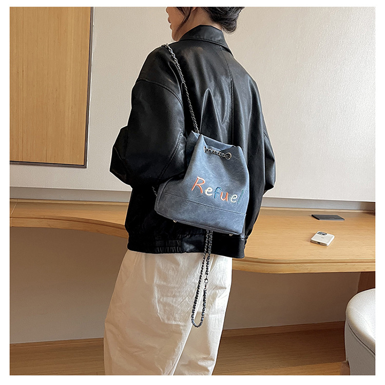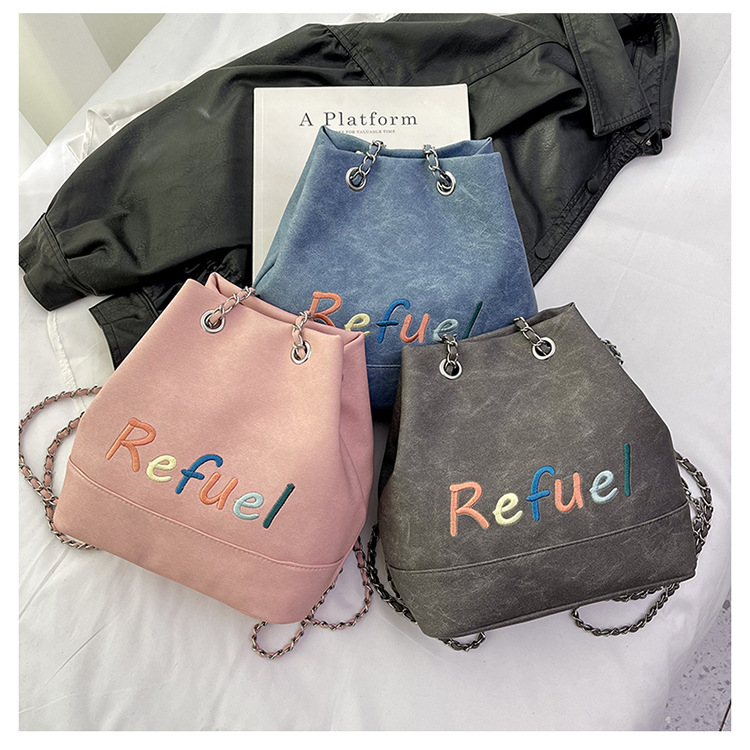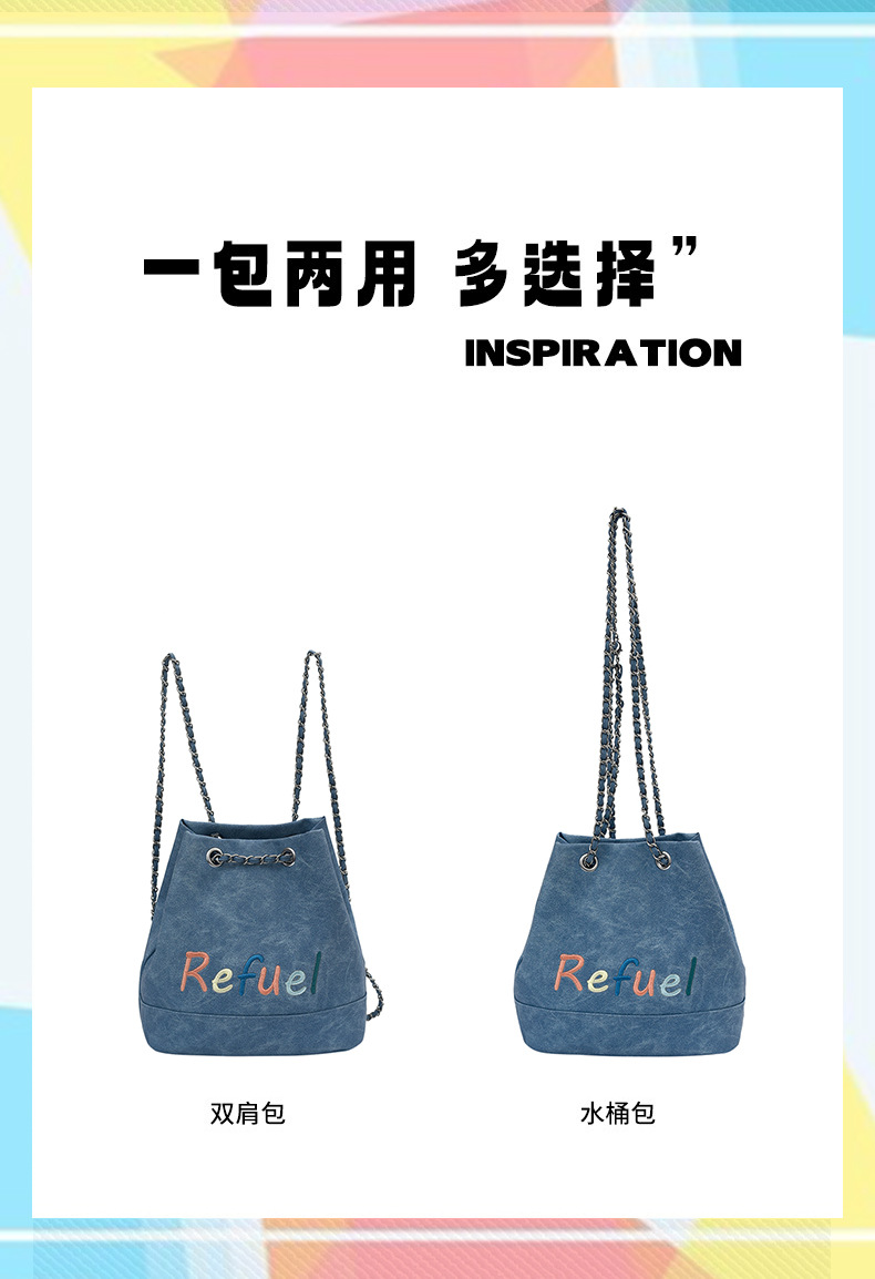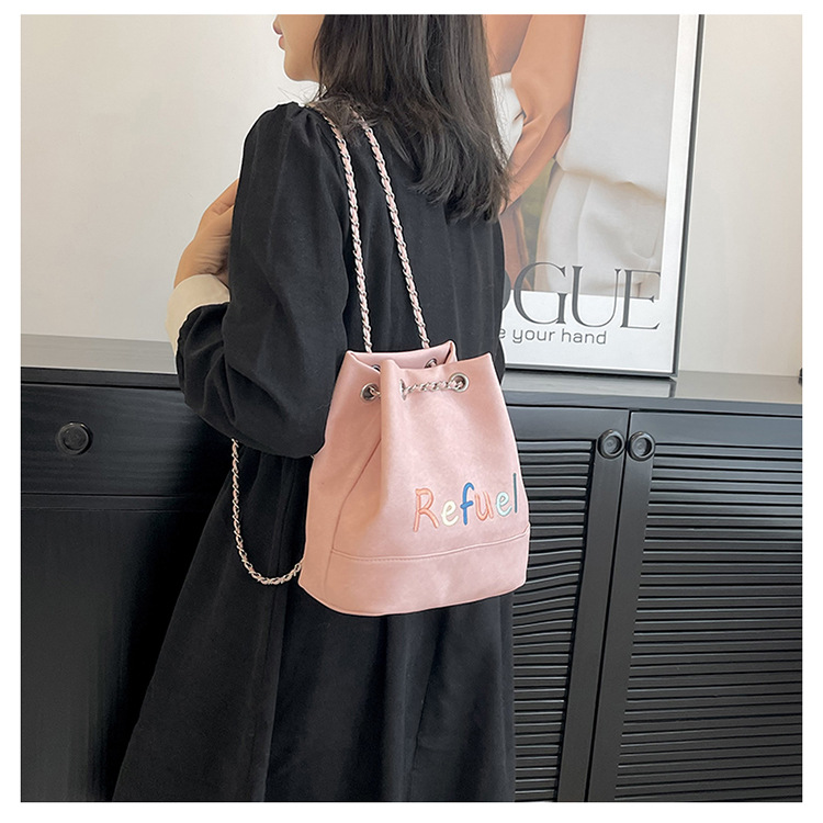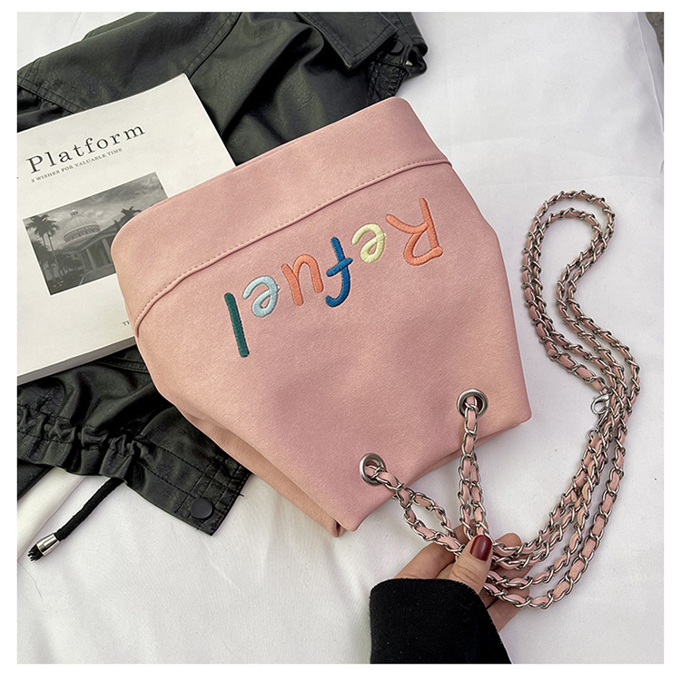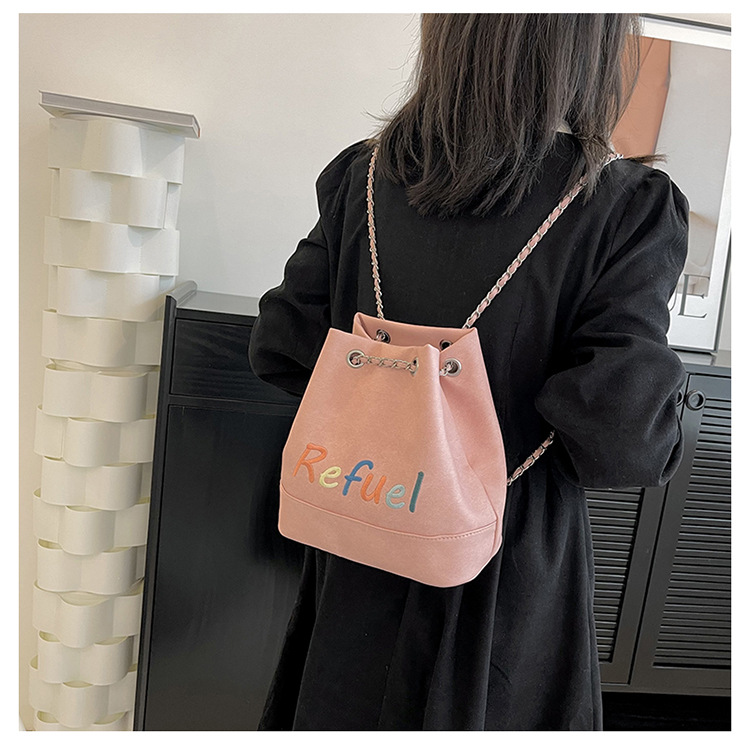 Ba lô dây rút dành cho nữ niche ins ba lô thêu chữ công suất lớn dây chuyền đa năng vai đơn Messenger túi xô