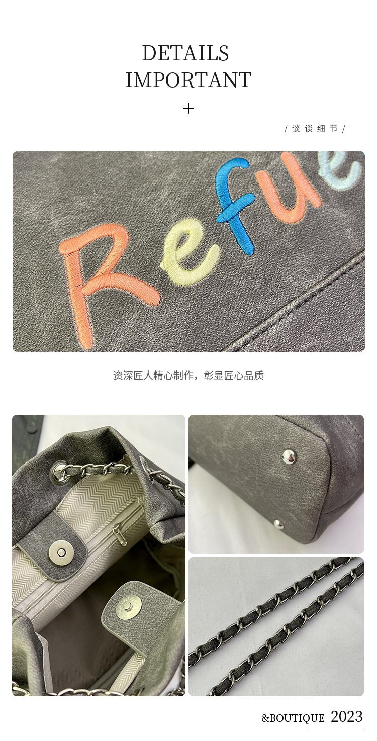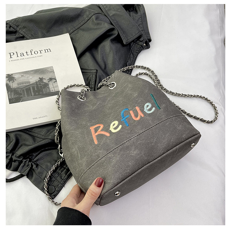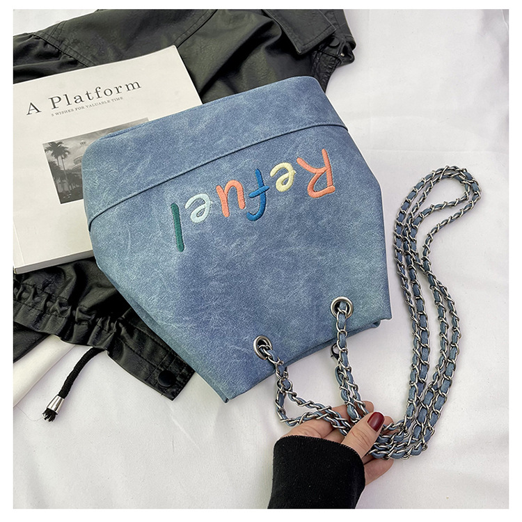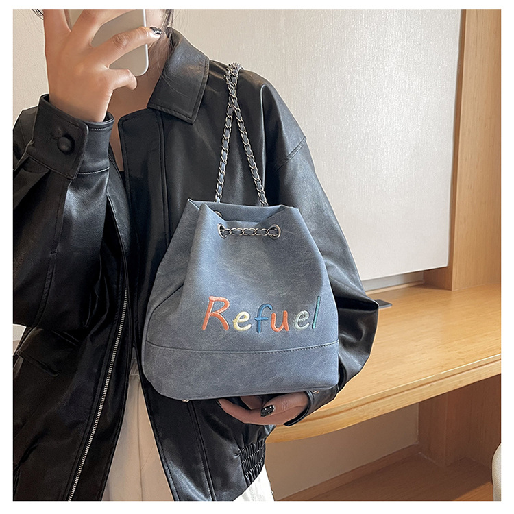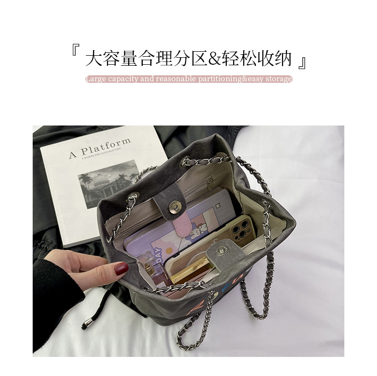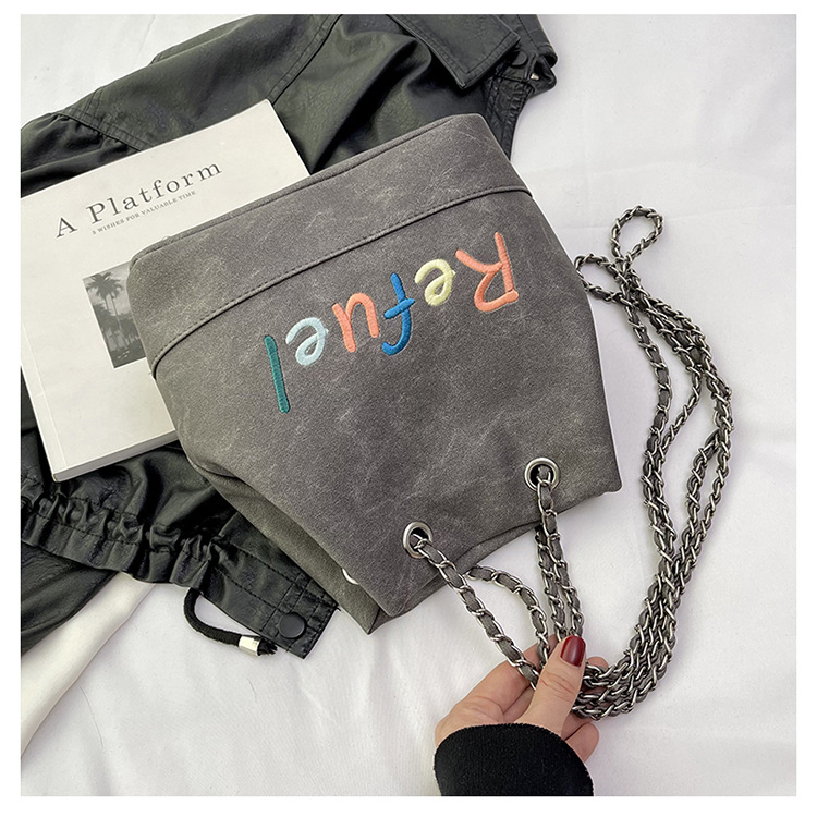 Ba lô dây rút dành cho nữ niche ins ba lô thêu chữ công suất lớn dây chuyền đa năng vai đơn Messenger túi xô