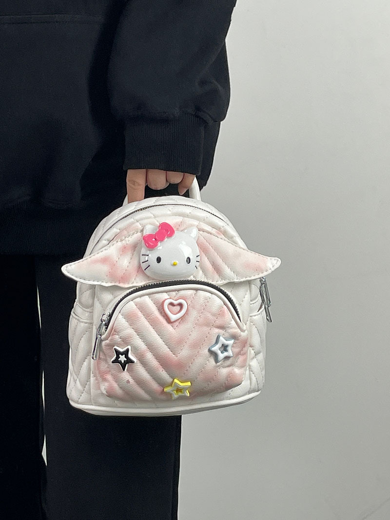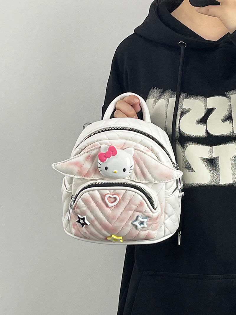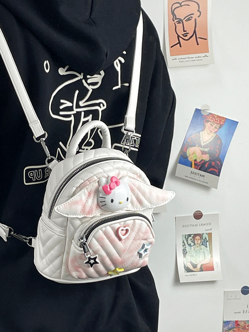 Ba lô hình cánh nhuộm màu KT dễ thương dành cho nữ phiên bản Hàn Quốc hợp thời trang của đường chỉ thêu hình thoi phổ biến Ba lô nhỏ dành cho nữ Túi Messenger thông thường